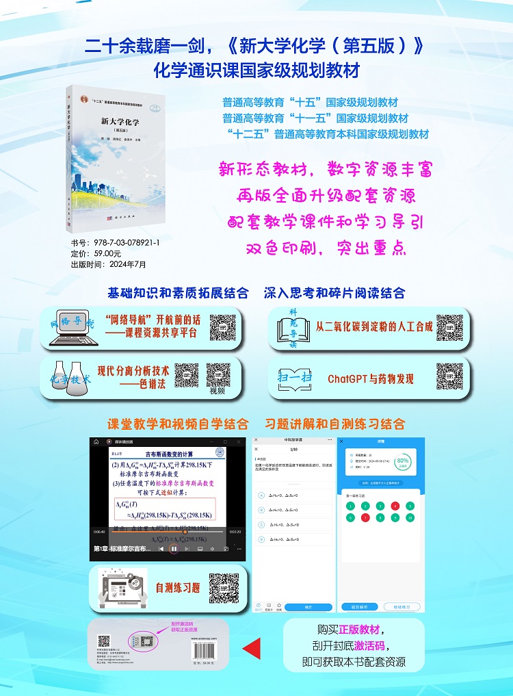 在保证教学内容科学性、准确性的基础上,本书向读者提供了化学学科的…新科技信息和21世纪初的主要成果。通过“科苑导读”“网络导航”“扫一扫”栏目为学习者开辟全新的视野,提供更便捷的信息通道,使读者可以通过网络(课程平台、手机APP、微信公众号等)进入更广阔的知识海洋。“化学技术”栏目用最简单的方式向读者介绍化学的分离、分析技术,使读者了解化学学科的实验科学水平。全书的关键词用英文标注。