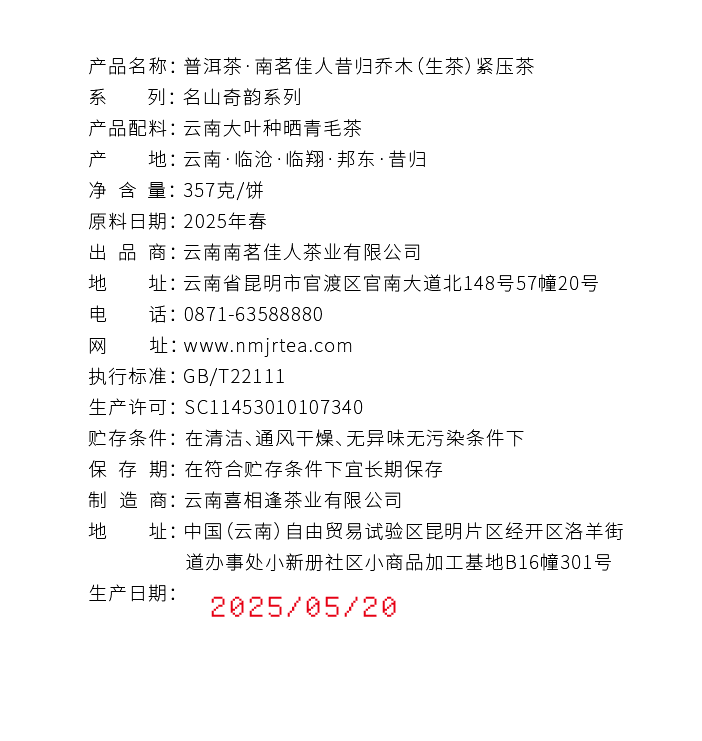 [买5送1]2025《大黑山乔木》春茶 200克/饼 生茶