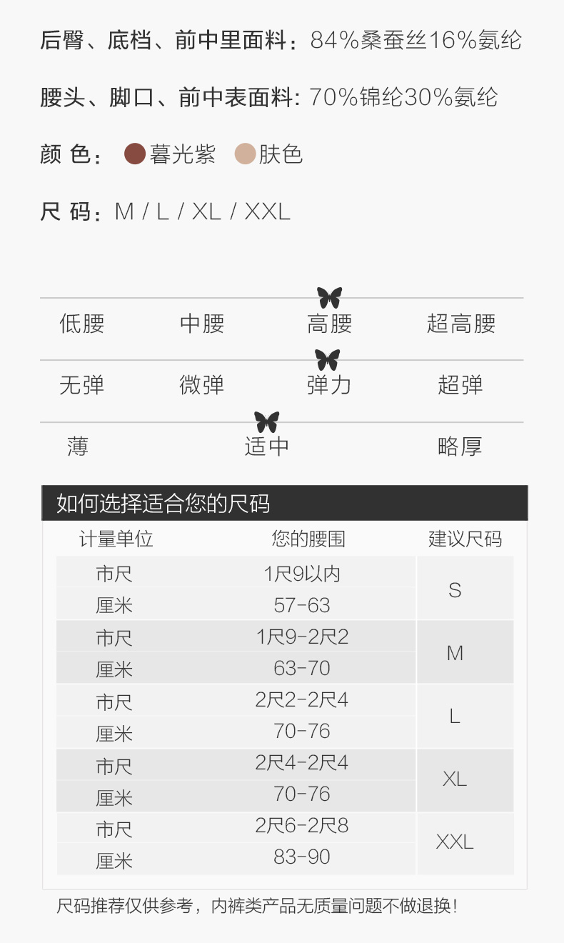 金三塔桑蚕丝氨纶内裤女弹力舒适高腰透气平角裤(私密物品不支持退换) NZF9C206