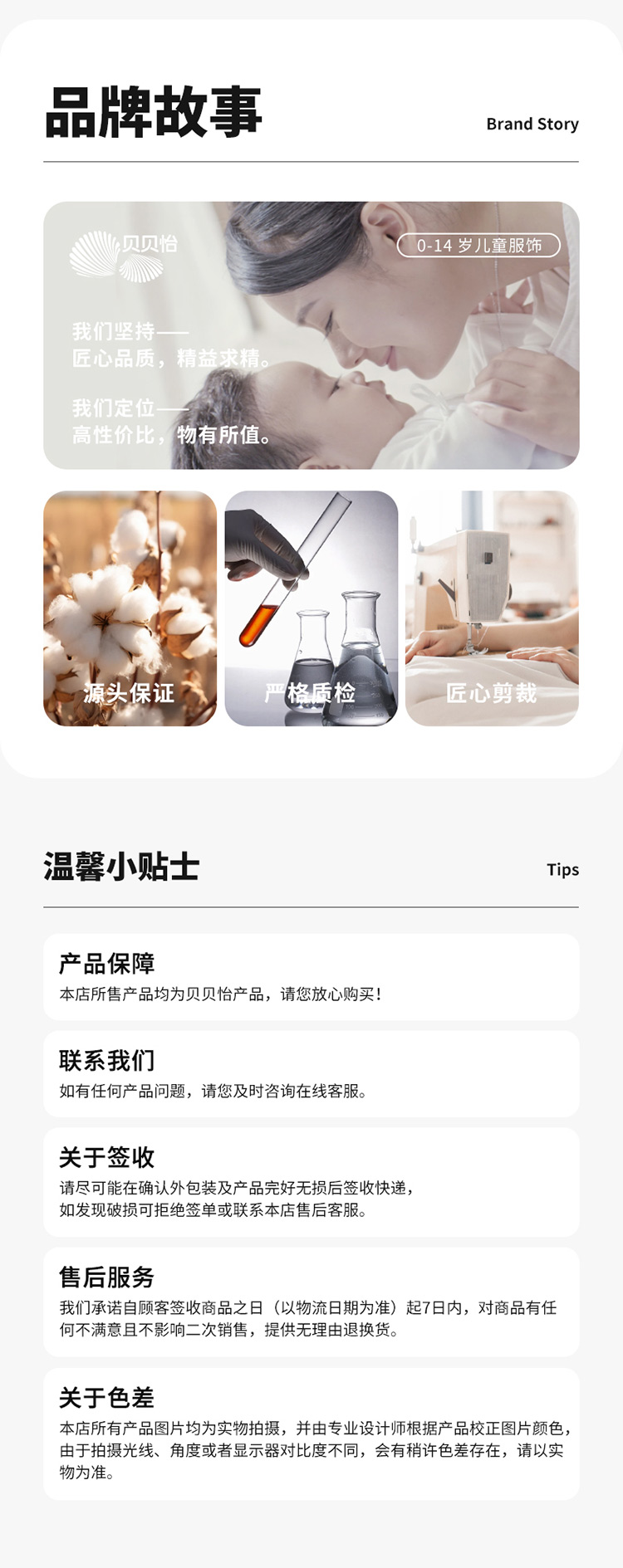 - 贝贝怡专注0-6岁婴幼儿服饰,坚持安全、柔软、舒适的产品理念,为千万中国家庭提供超高品质、安全可靠的婴幼儿服饰产品,妈妈放心,宝宝开心!