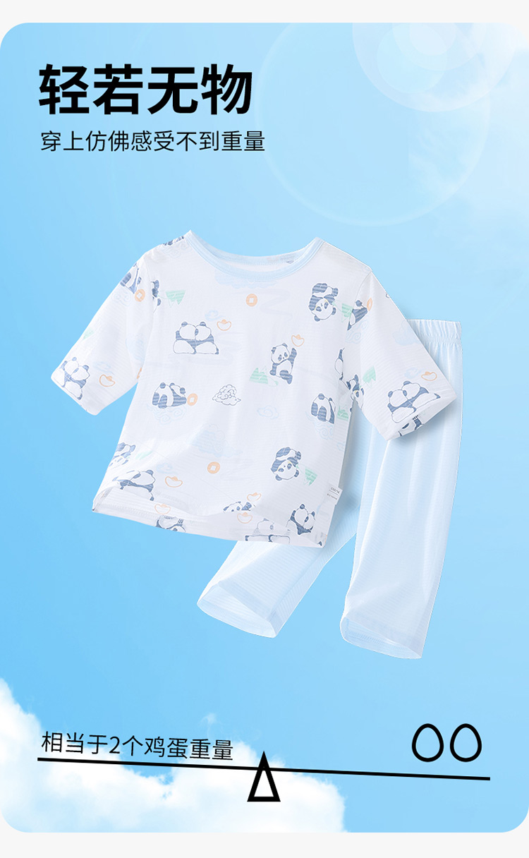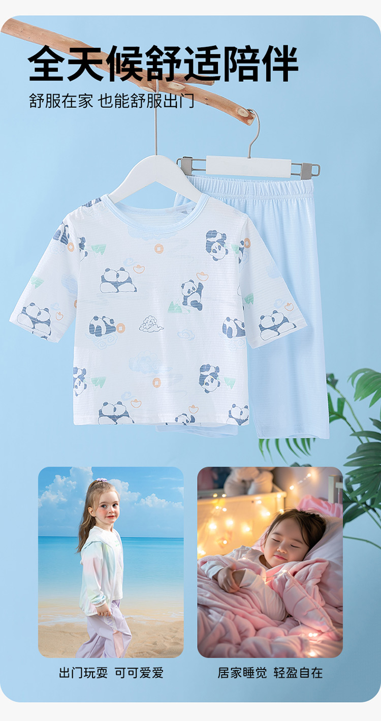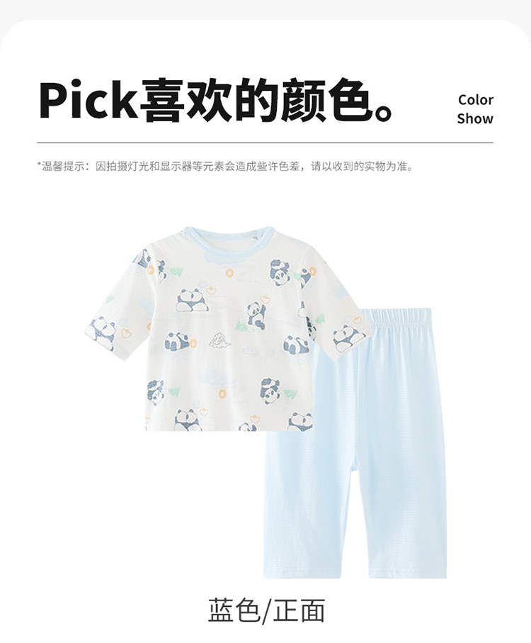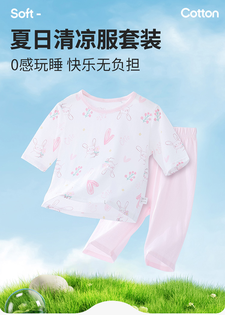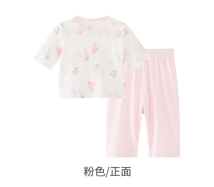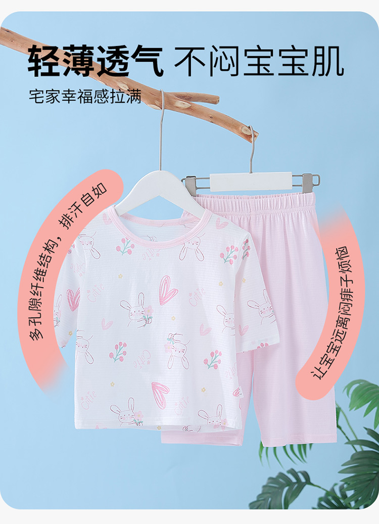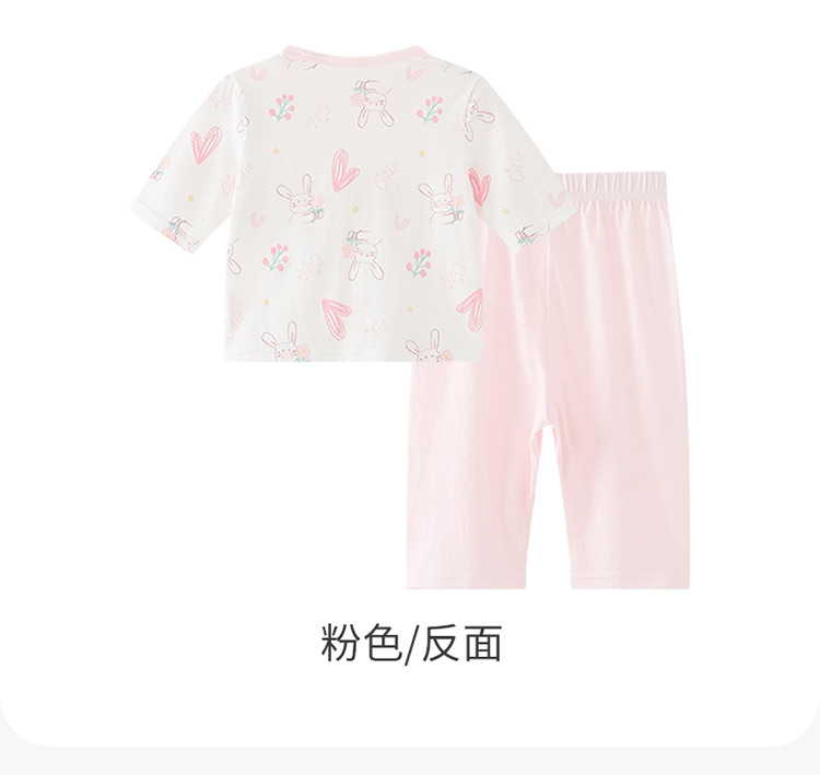 贝贝怡夏季新款男女宝宝纯棉家居服轻薄透气短袖T恤七分裤睡衣套装ZB2ET066
