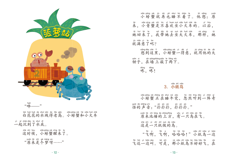 小螃蟹睡着了,小青蟹却在想:干嘛每天都要晒太阳呢?傻乎乎的