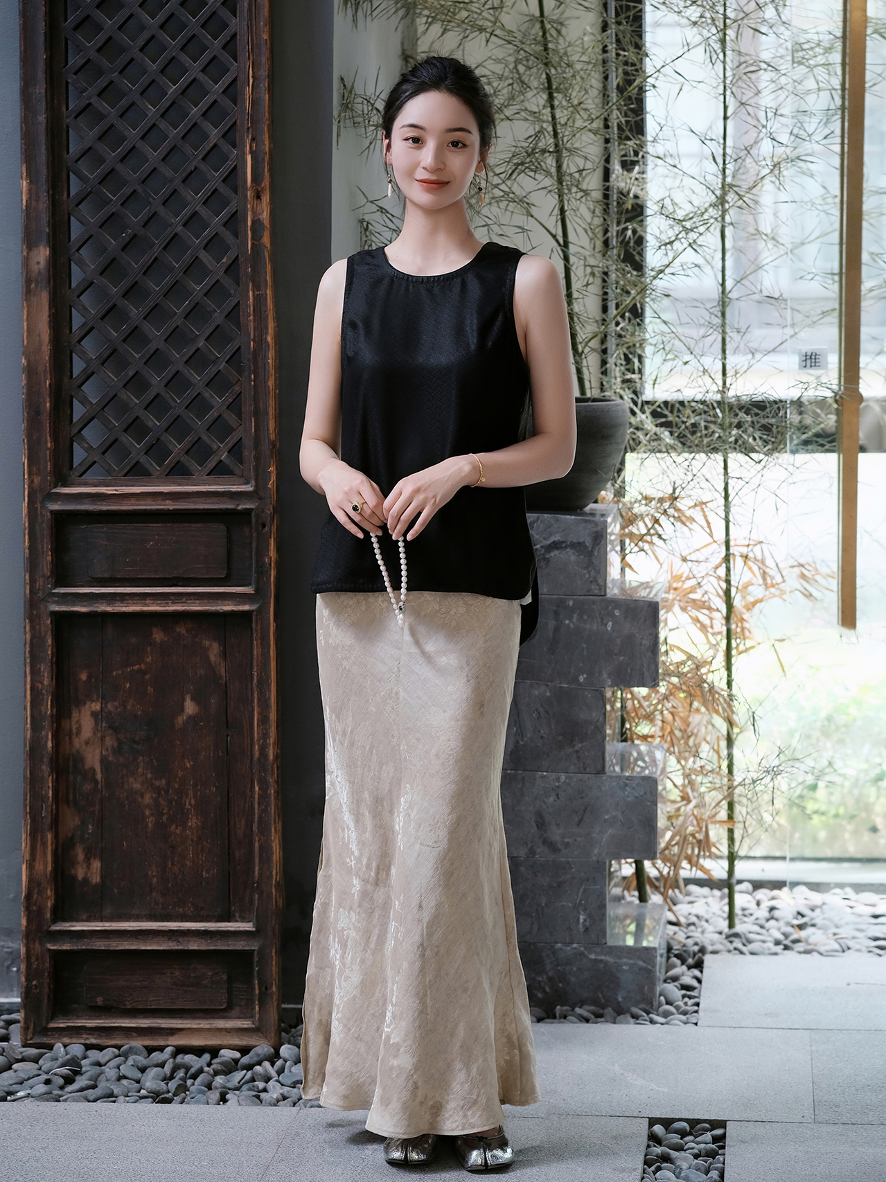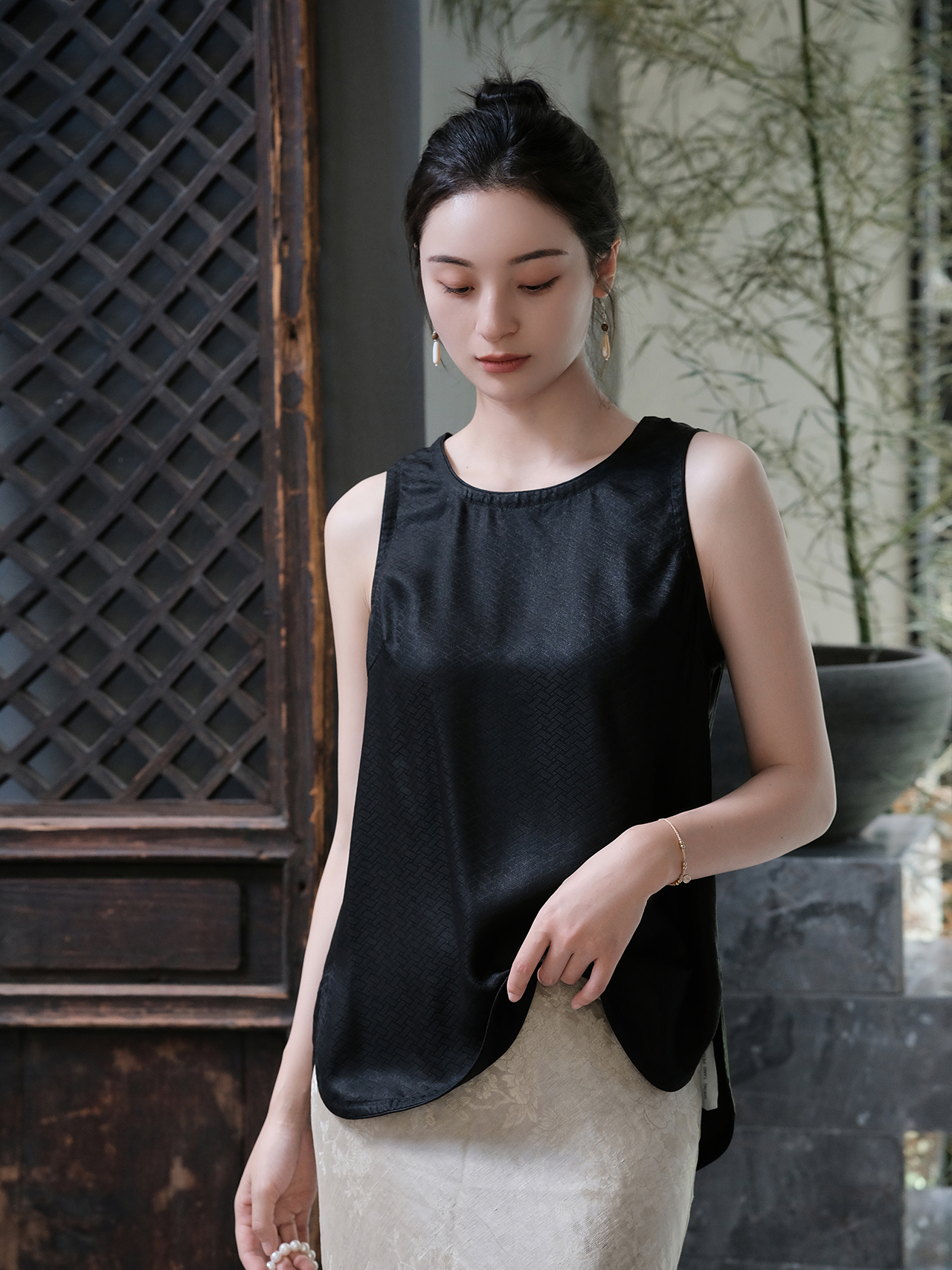 盛唐牡丹 |真丝香云纱人字纹背心
