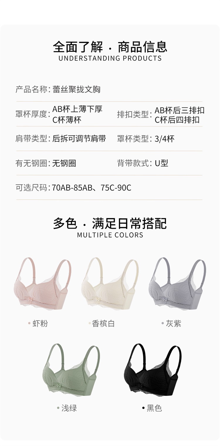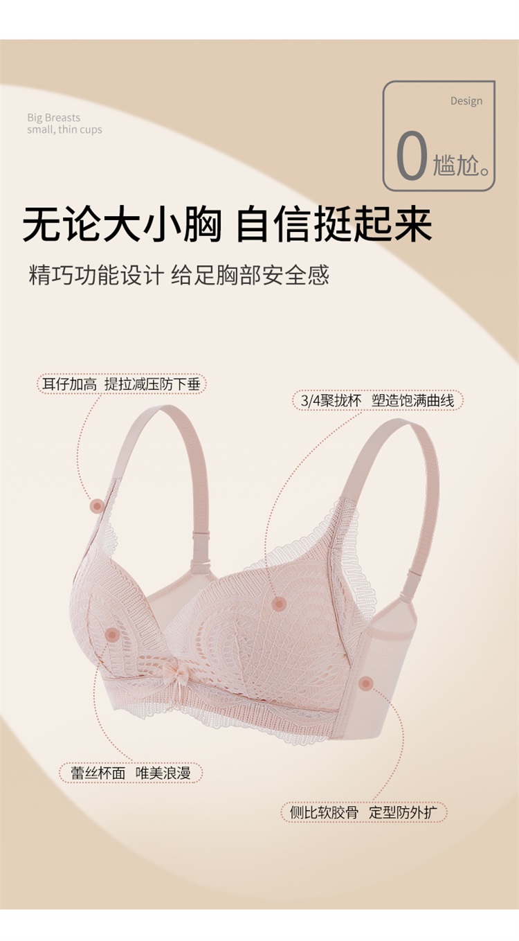 雅黛丽内衣聚拢小胸性感蕾丝文胸无钢圈大胸显小薄款收副乳胸罩女