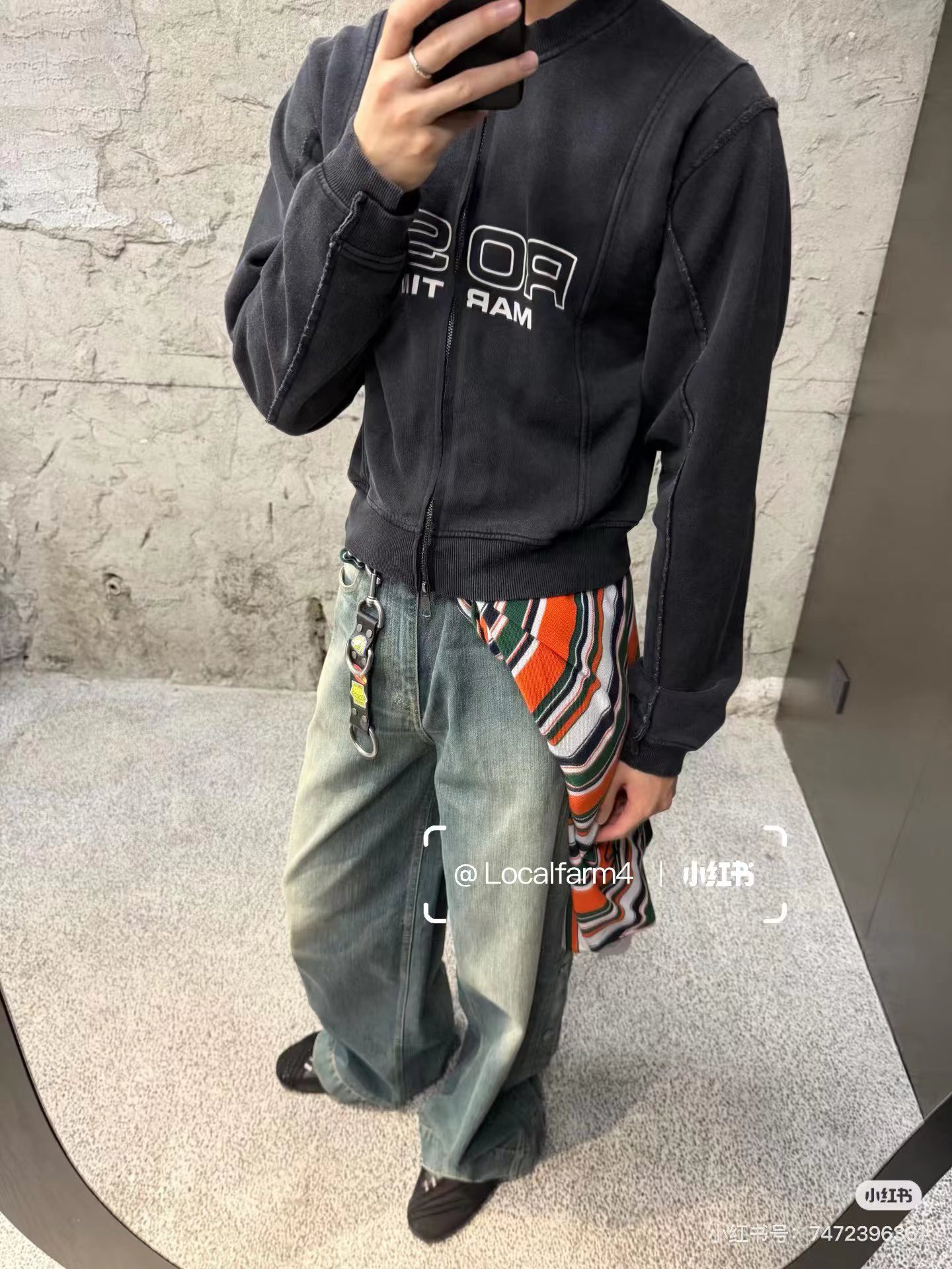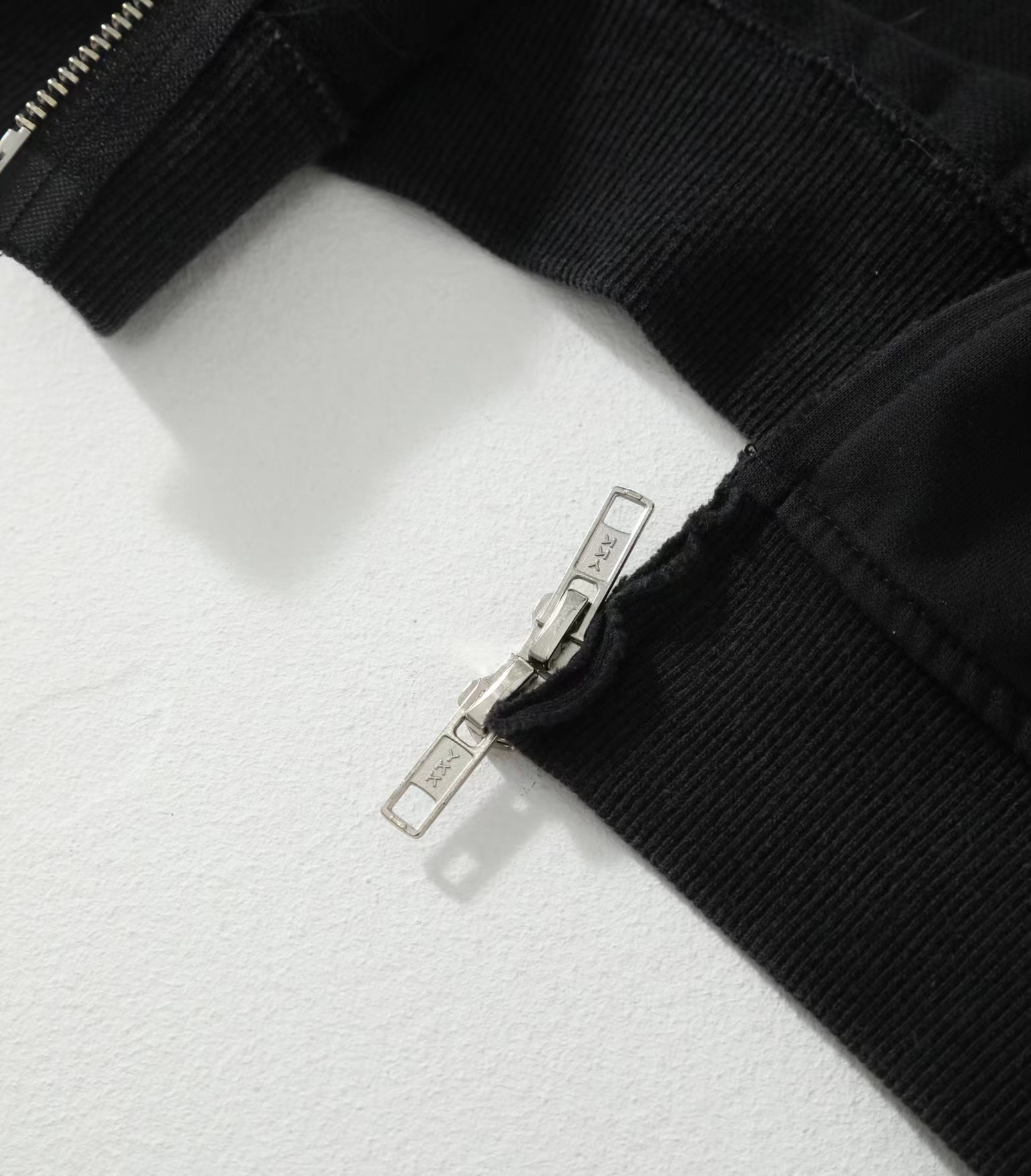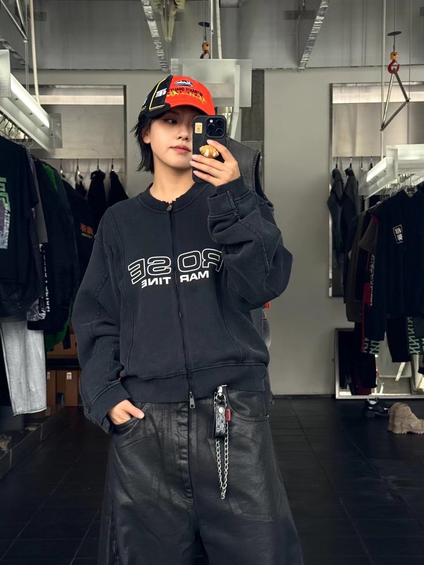 字母标语不规则解构拼接重磅水洗做旧双拉链夹克外套 男女同款,蔡徐坤上身同款,解构潮流新定义,双拉头增加可玩性,对位印花,重工拼接挑破毛边水洗做旧,帅痞慵懒感十足,潮咖男女上身超好看!定制380g纯棉鱼鳞底毛圈布,炒色水洗做旧,复古高街感拉满,上身挺阔有型,垂感十足!工艺方面前幅印花对位logo字母标语印好后单独分割裁片,与拉链拼合,操作起来非常耗时耗力。jing典的圆领设计,不挑脸型,前后整身不规则解构拼接设计,十分考验老师傅的刀功,耗时耗料,拼接部位全部重工挑破毛边做旧,高街层次感满满,非常重工。双铜扣拉头拉链,增加穿搭趣味性,宽松版型,百搭任何身材。全套定制三标辅料,真正的艺术品级别好货,自留强烈推荐~
