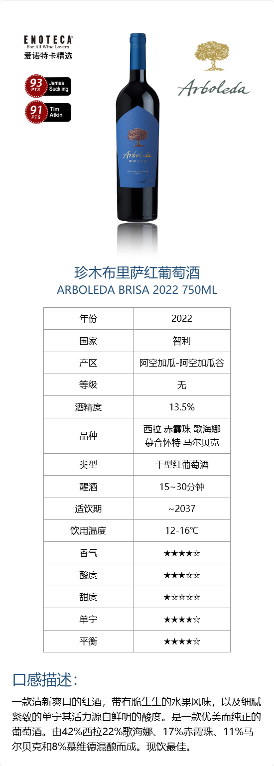 珍木布里萨红葡萄酒 2022 7ARBOLEDA BRISA 750ml