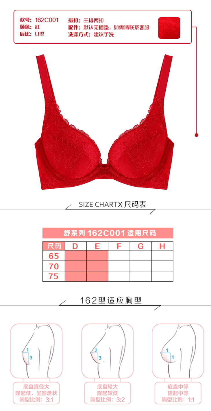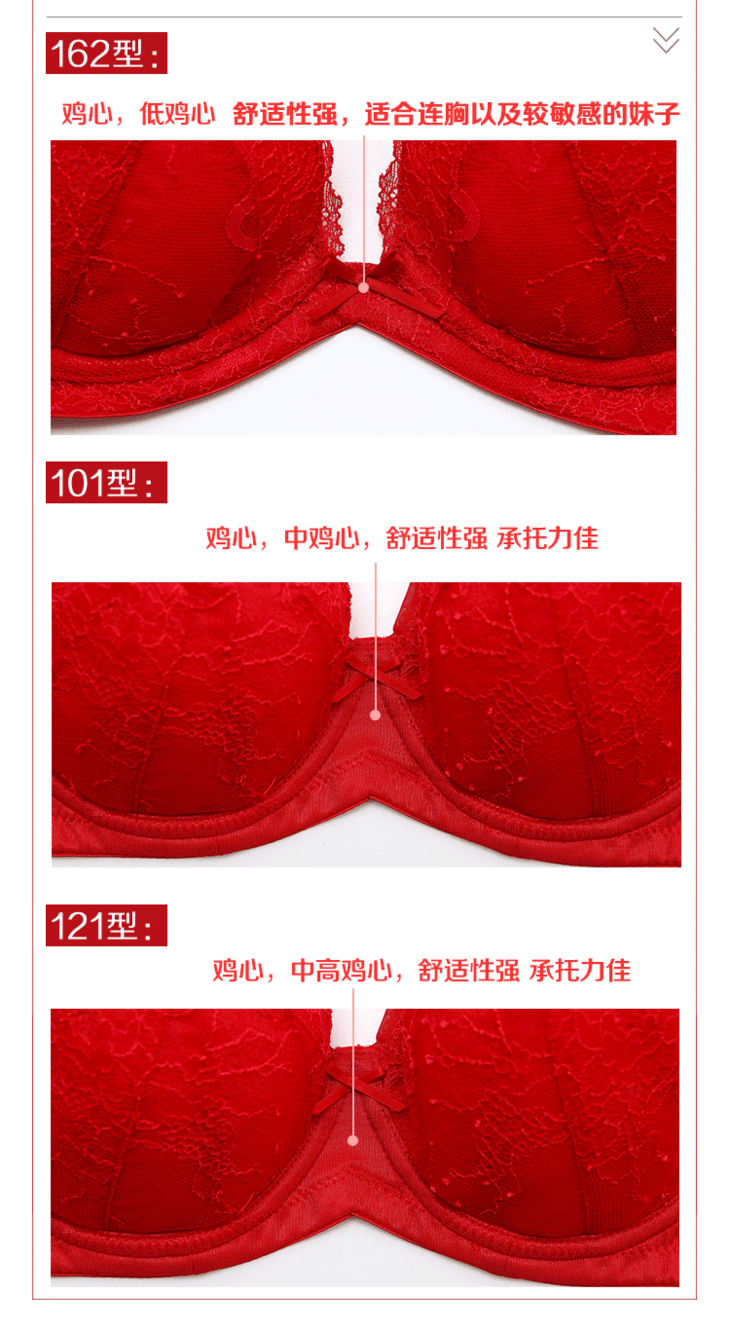 奶糖派璞系列162、101、121型悸动大红色大罩杯文胸