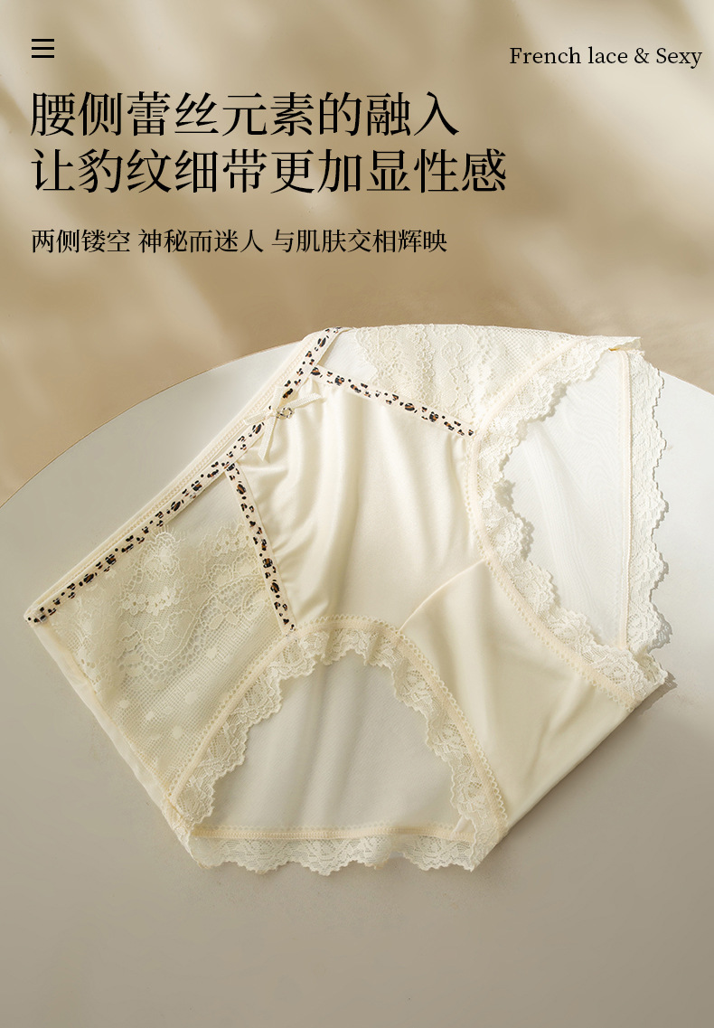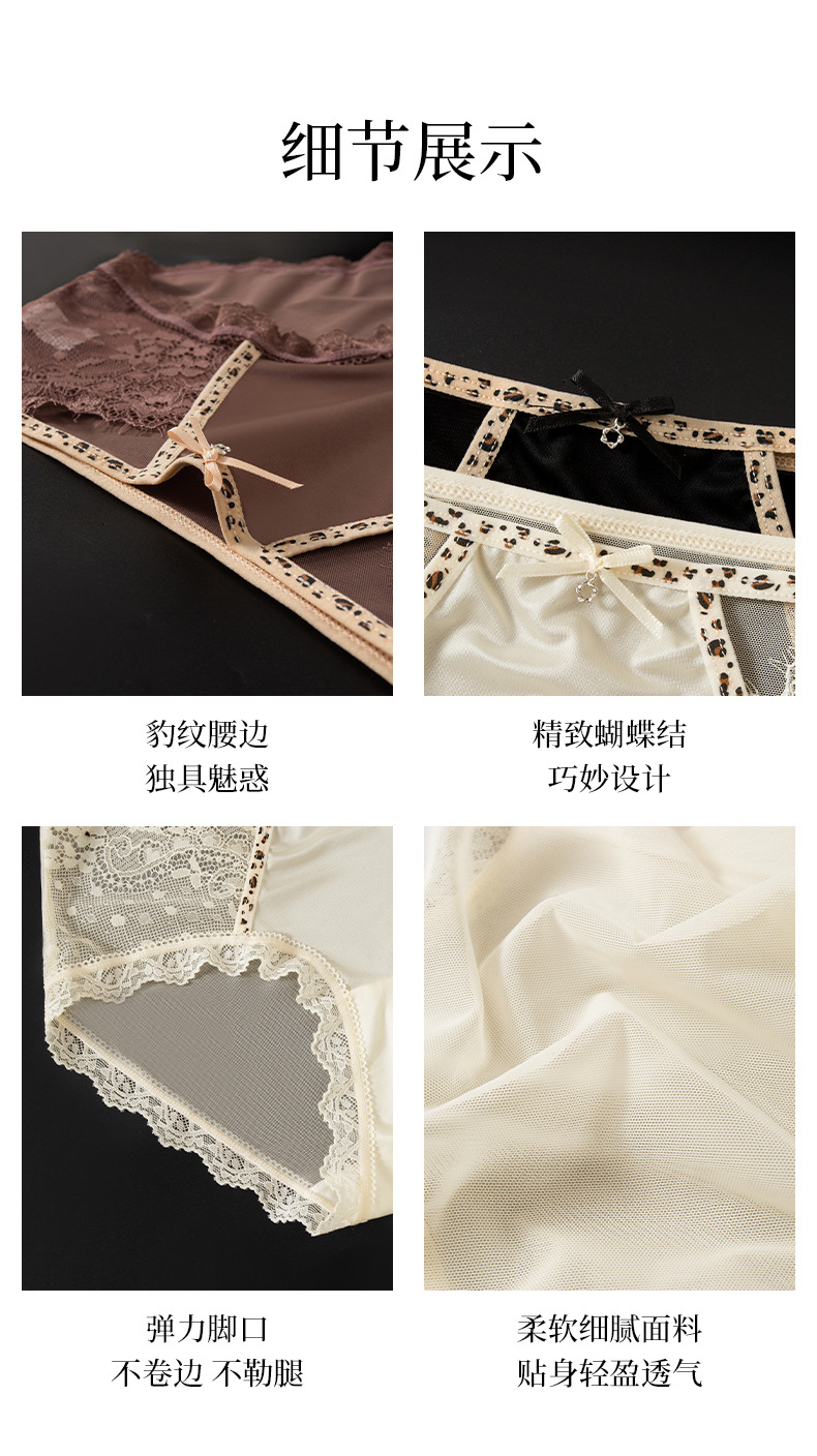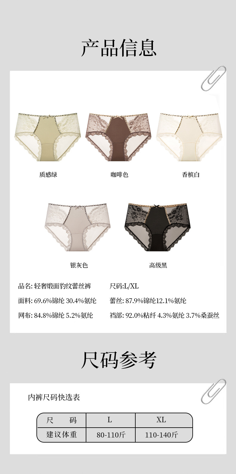 【一眼沦陷❗️轻奢缎面豹纹蕾丝裤】若隐若现的撩人小心机「上身即刻爱上」添加桑蚕丝底裆,保持裆部干爽舒适,守护你的健康,网纱蕾丝边透气桑蚕丝底裆三角裤L