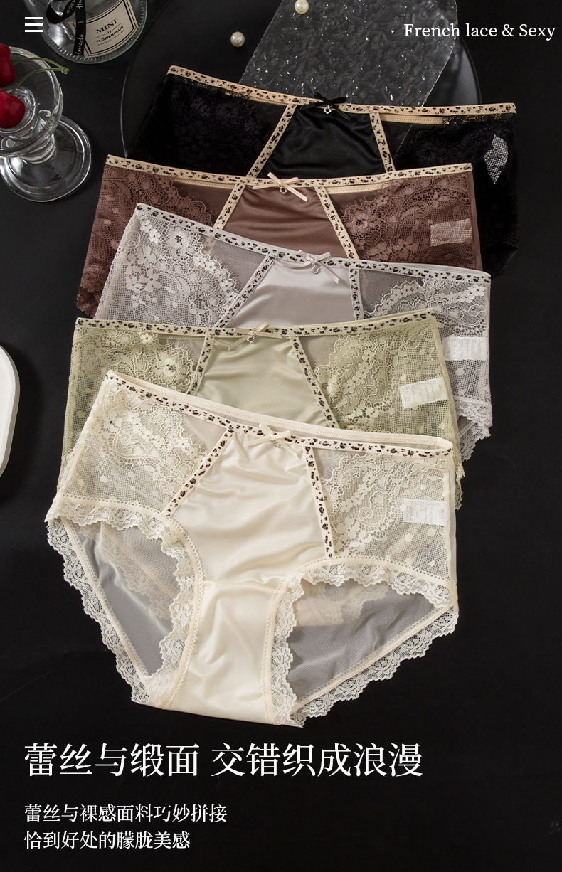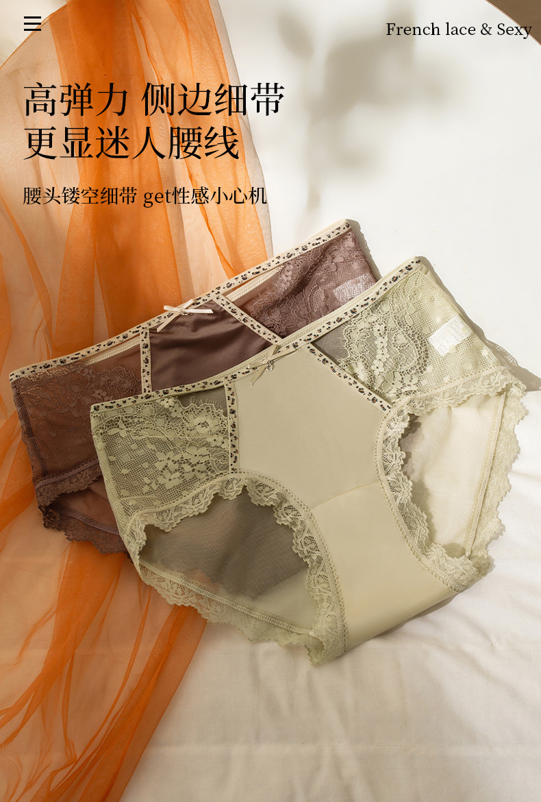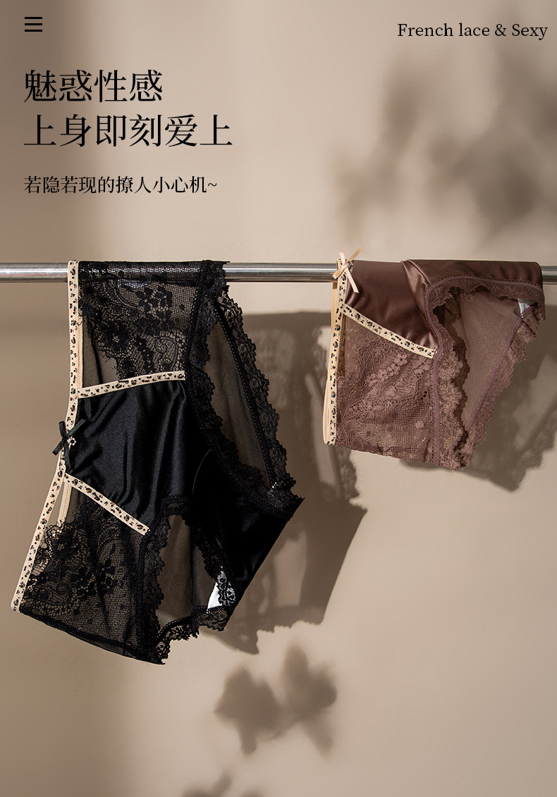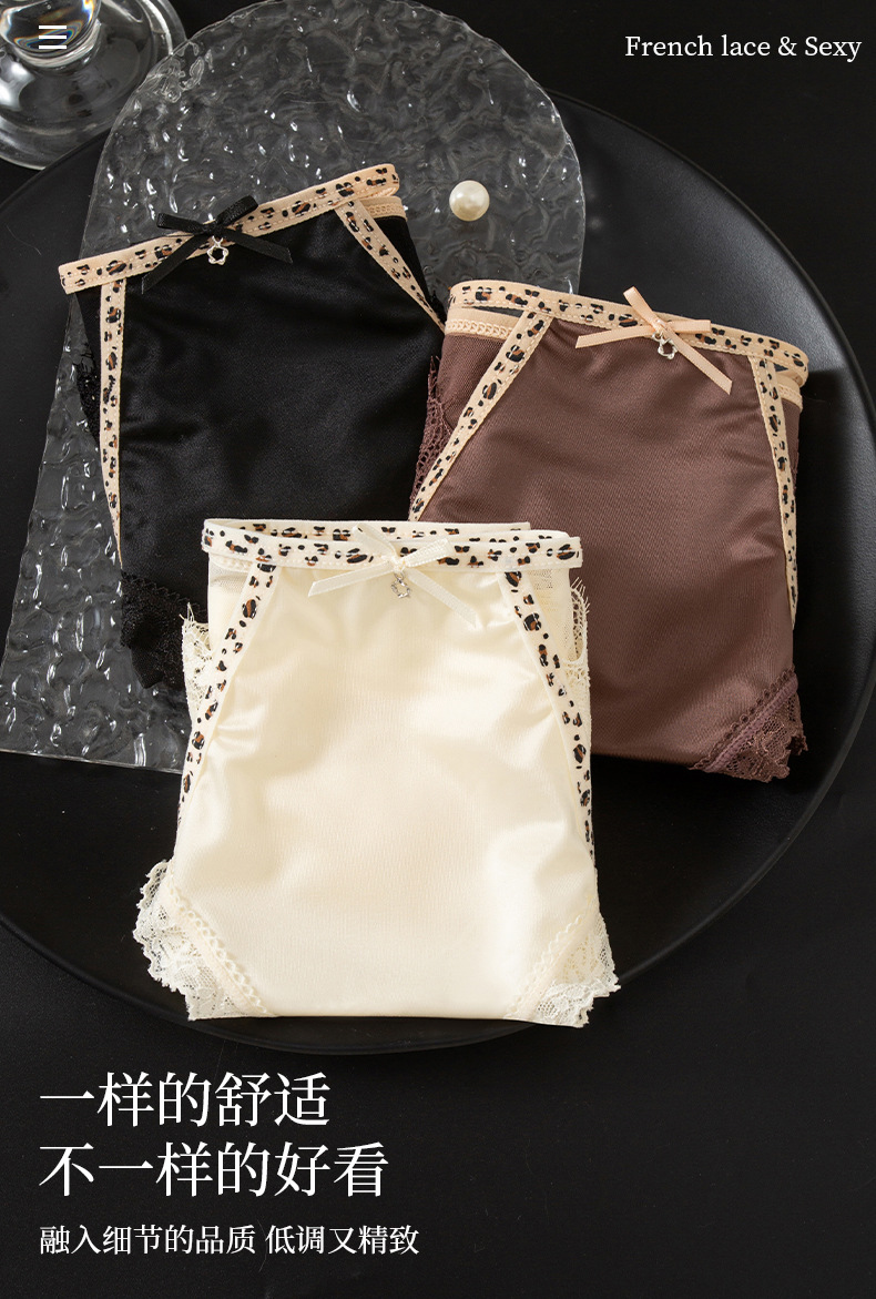 【一眼沦陷❗️轻奢缎面豹纹蕾丝裤】若隐若现的撩人小心机「上身即刻爱上」添加桑蚕丝底裆,保持裆部干爽舒适,守护你的健康,网纱蕾丝边透气桑蚕丝底裆三角裤L