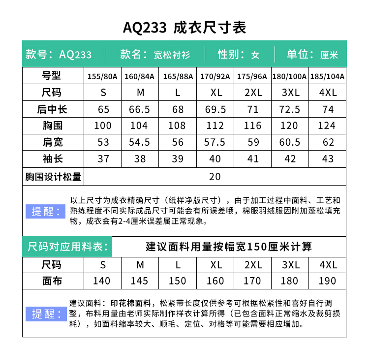 裁缝学苑AQ233拼蕾丝宽松衬衫纸样女装上衣衬衣服装打板样板