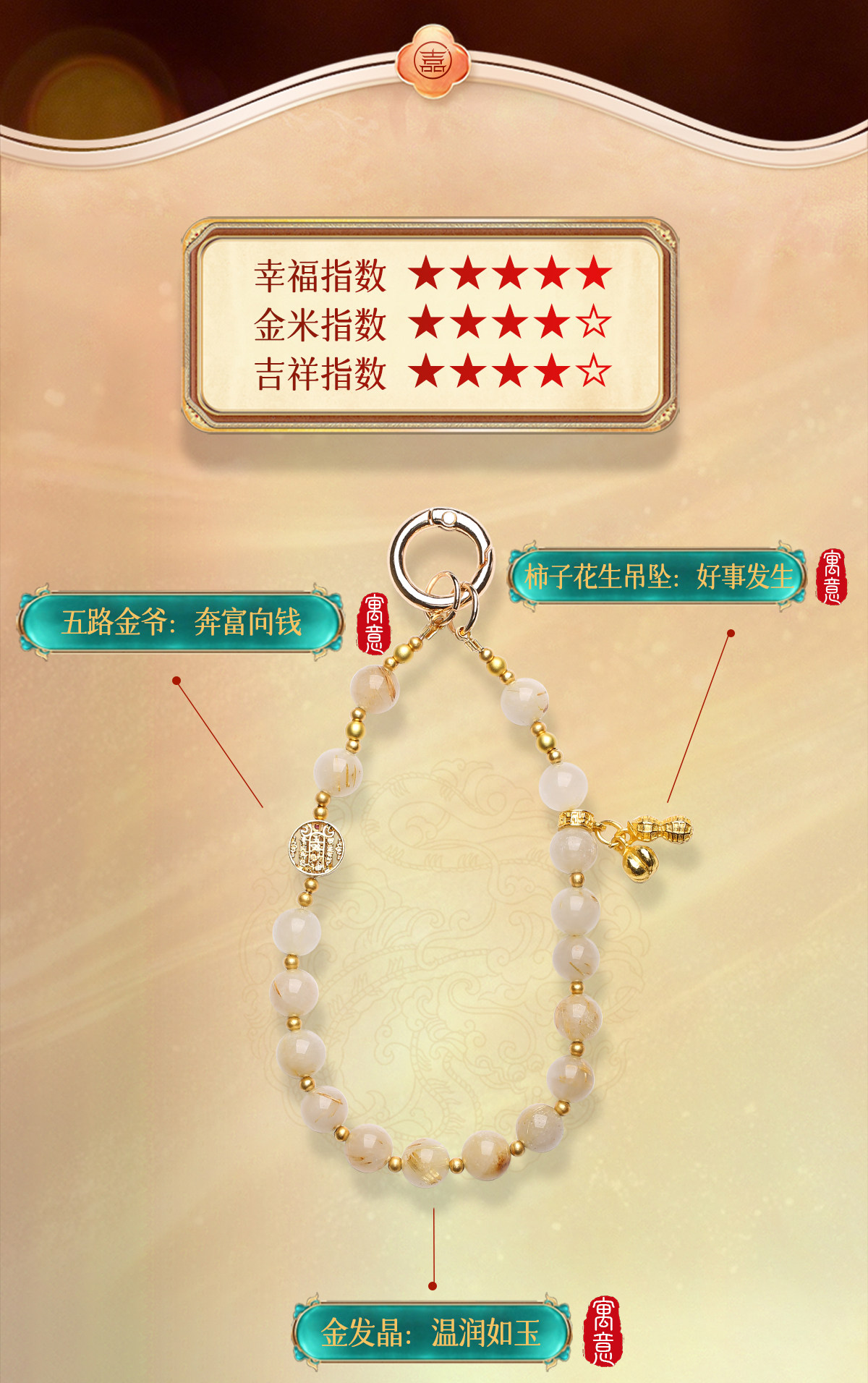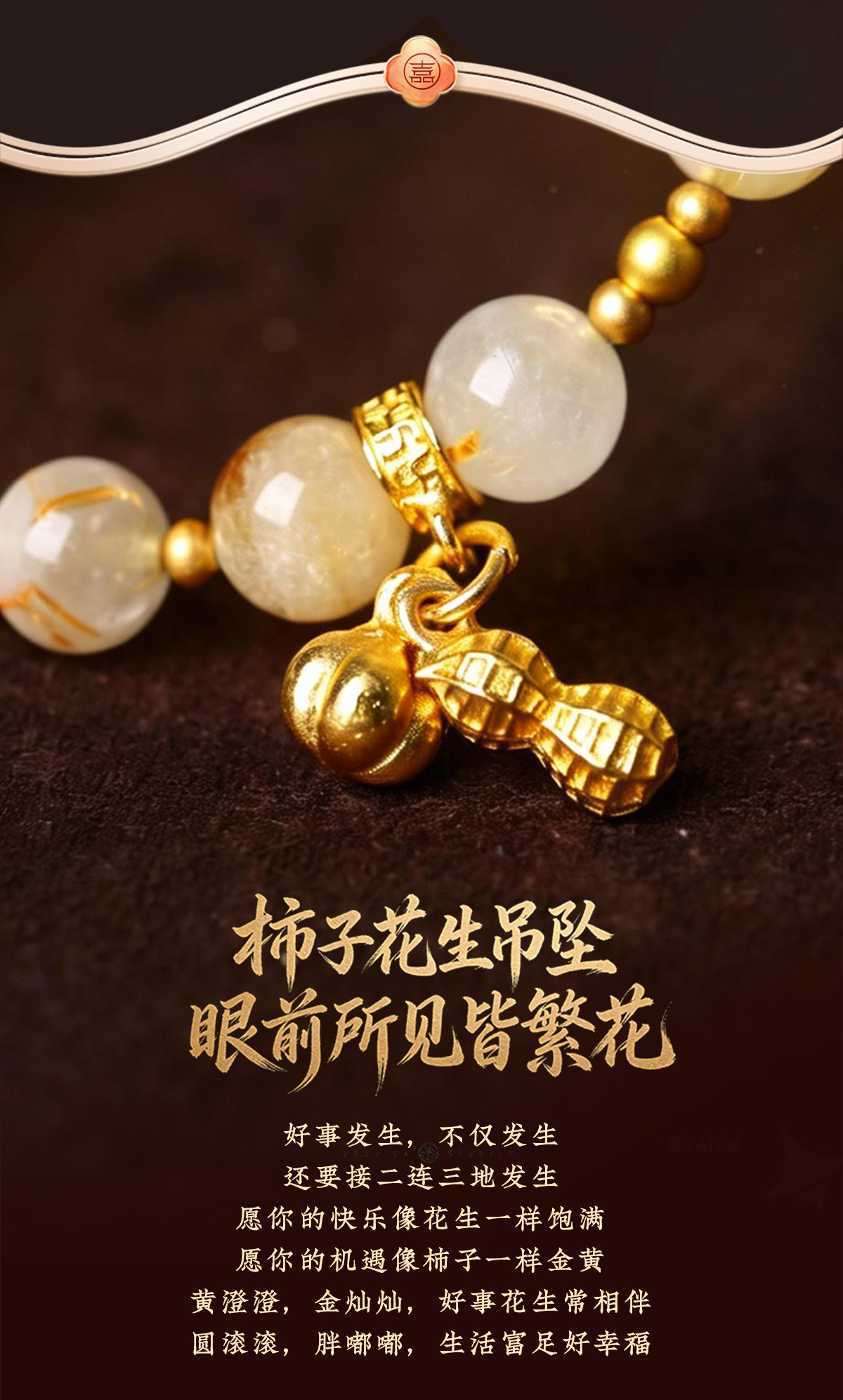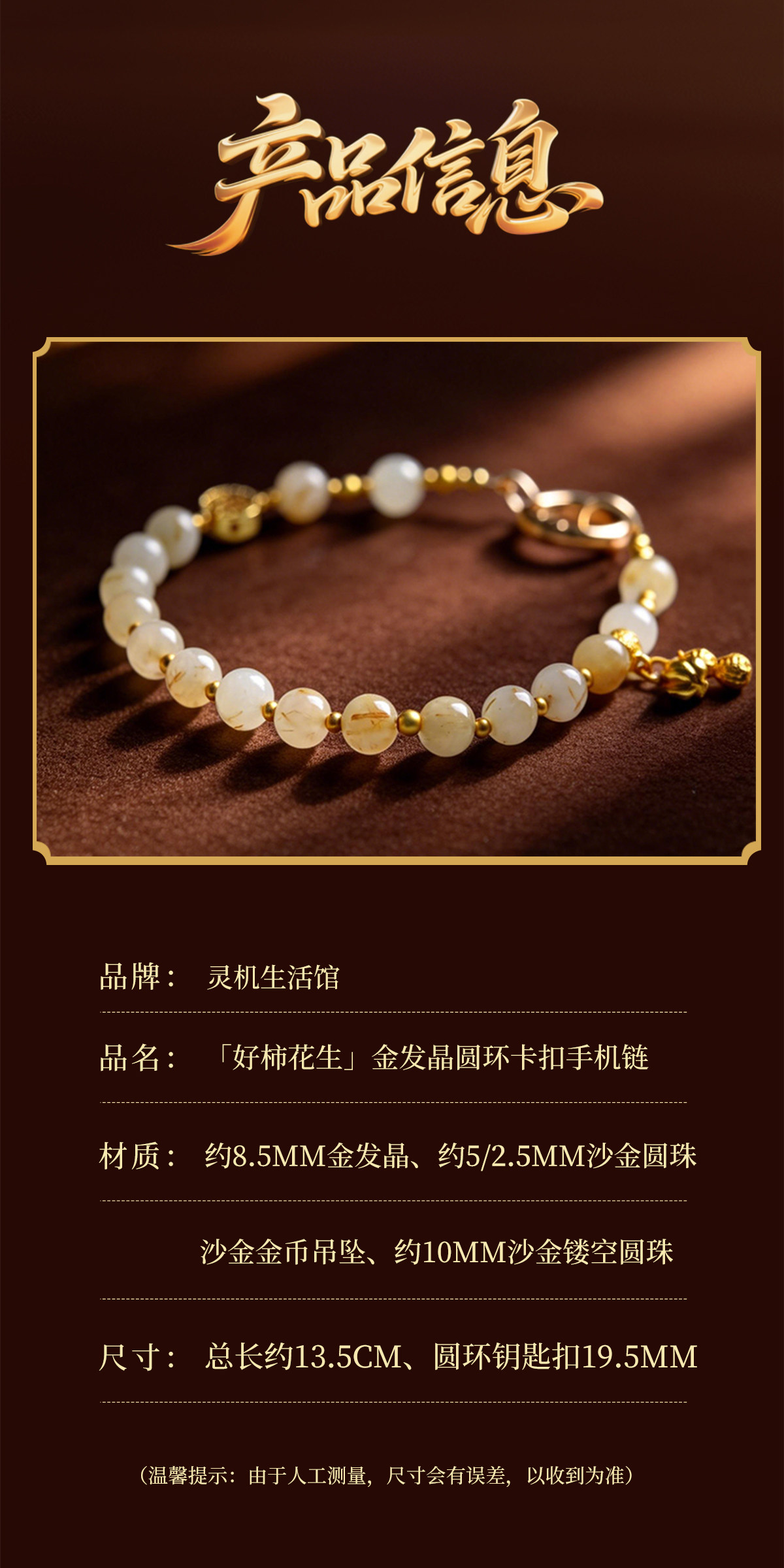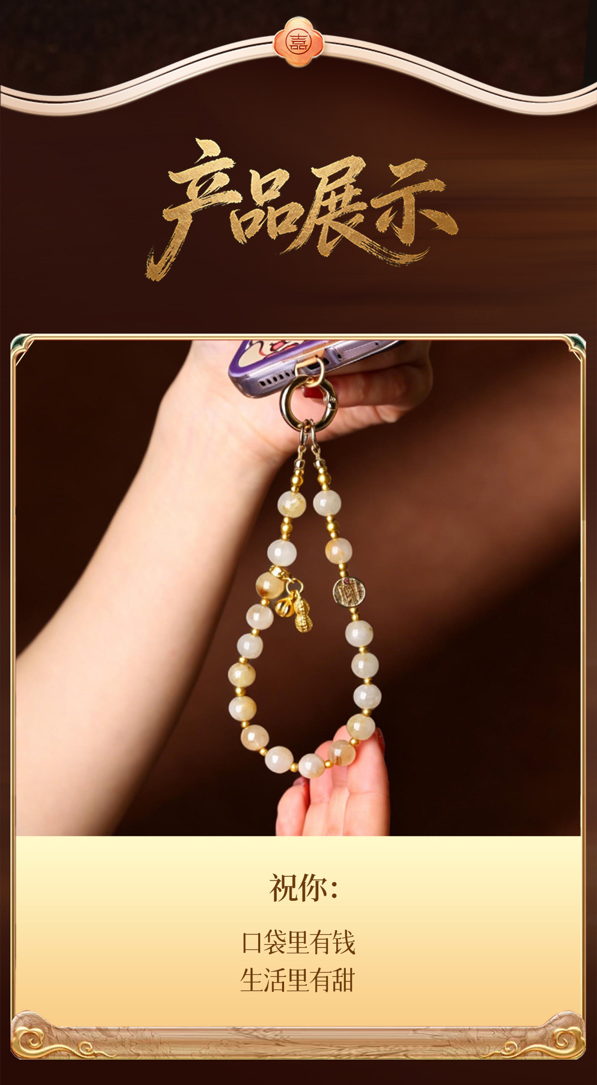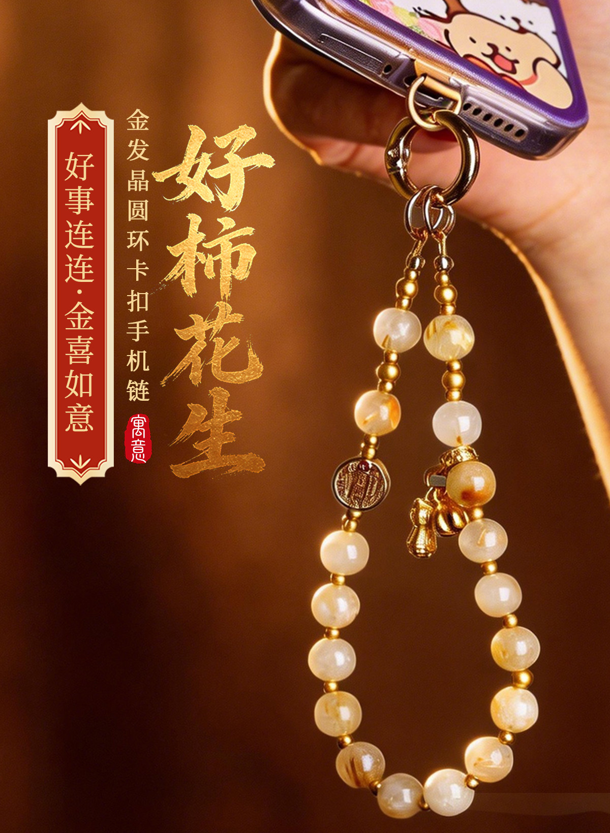 【祈愿吉品】「好柿花生」金发晶圆环卡扣手机链相机防丢挂饰安全绳