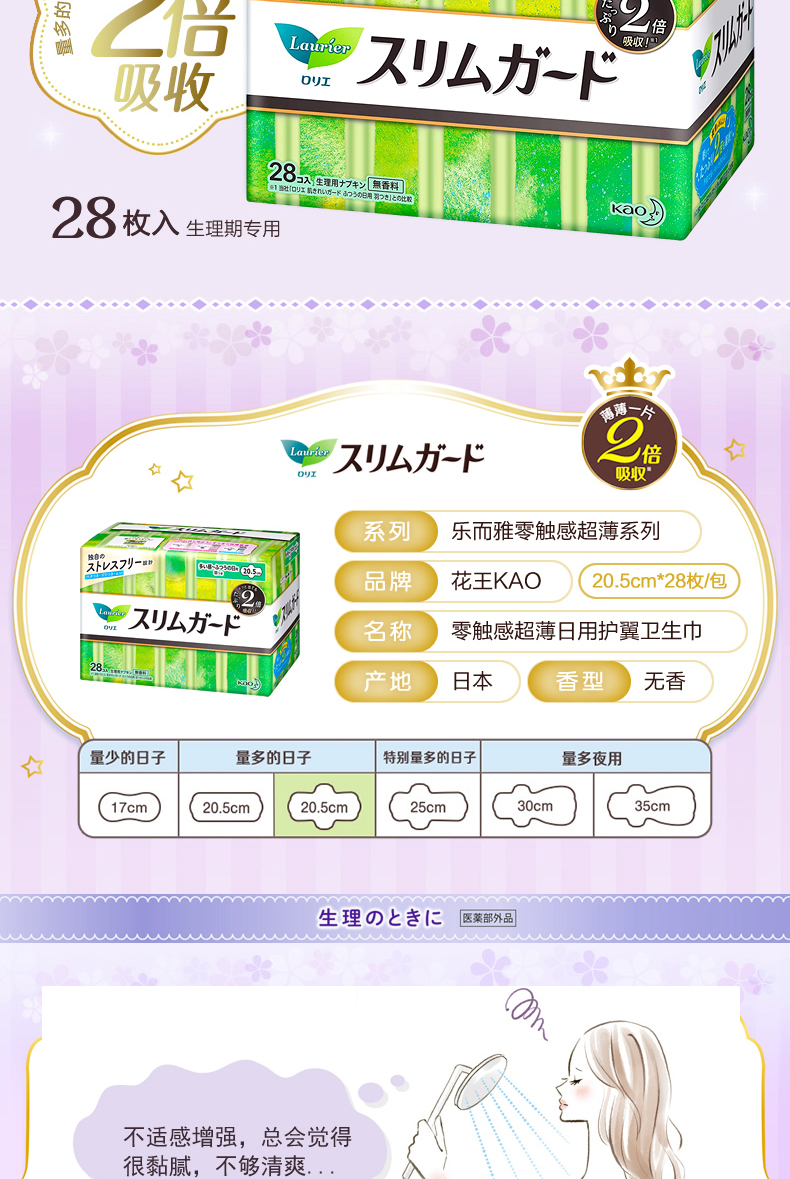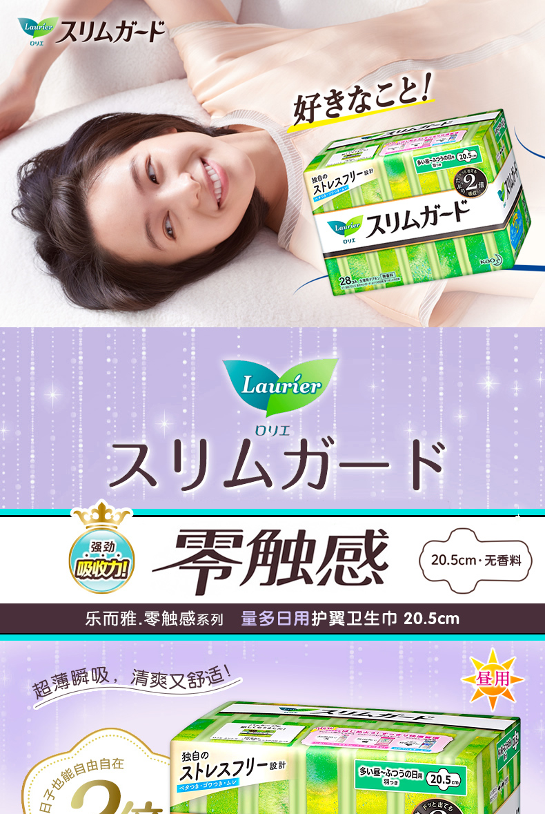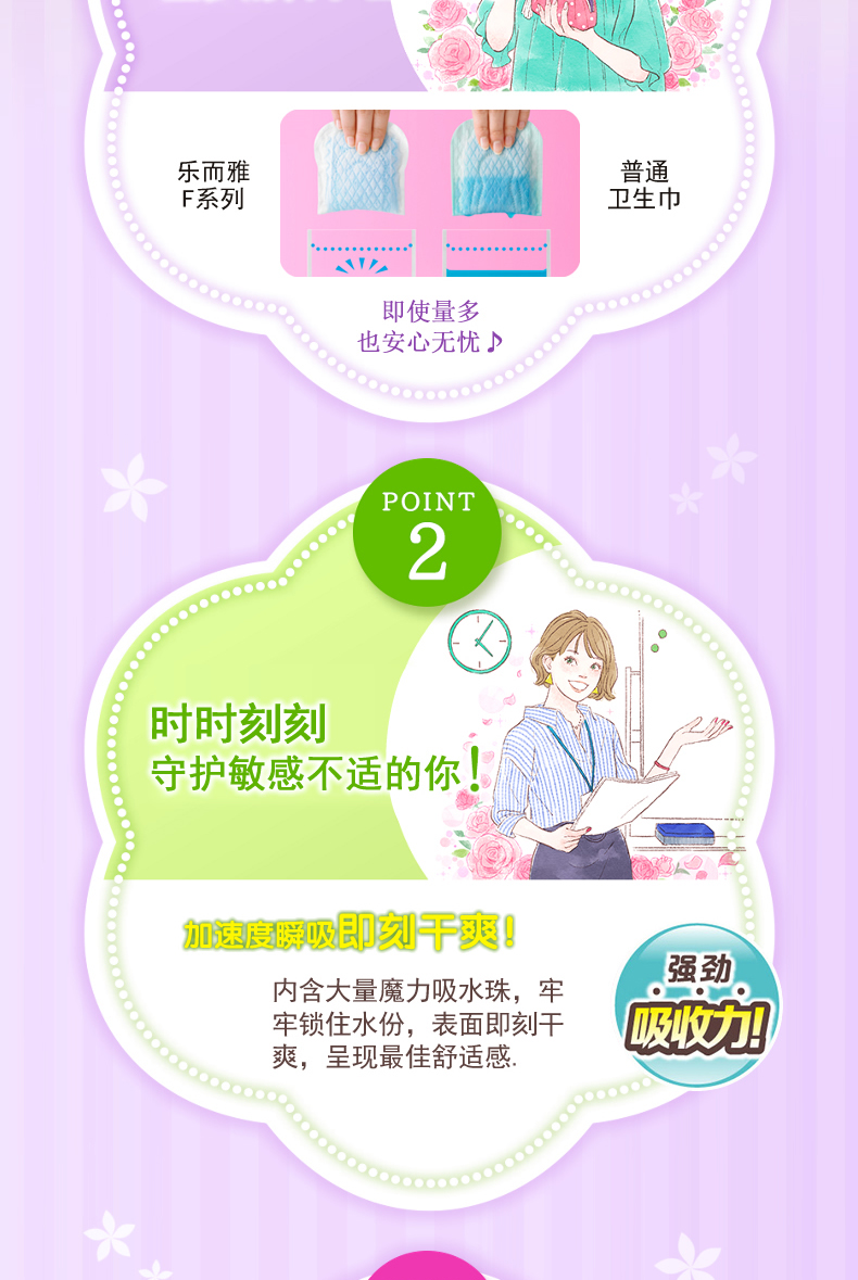 4楼Eubelle欧蓓 3包 花王乐而雅瞬吸超薄日用卫生巾20.5cm*28片 吊牌价:36-108元 活动价:29.9-85元