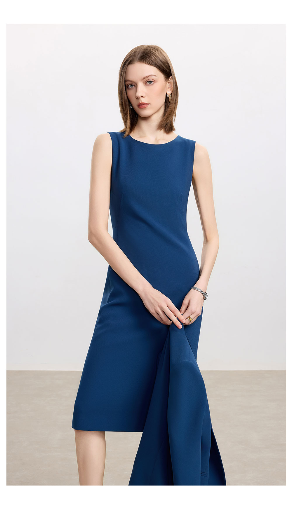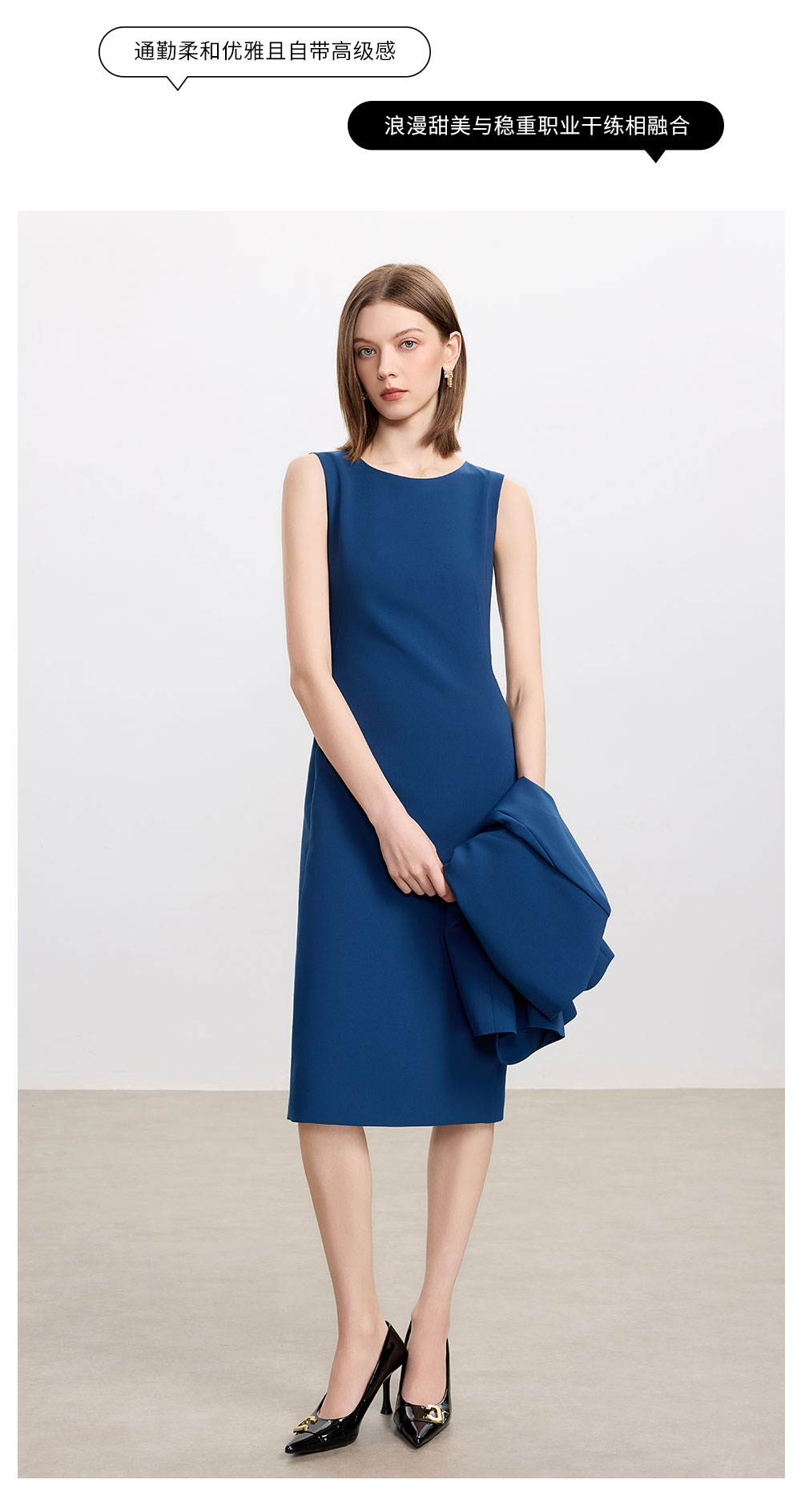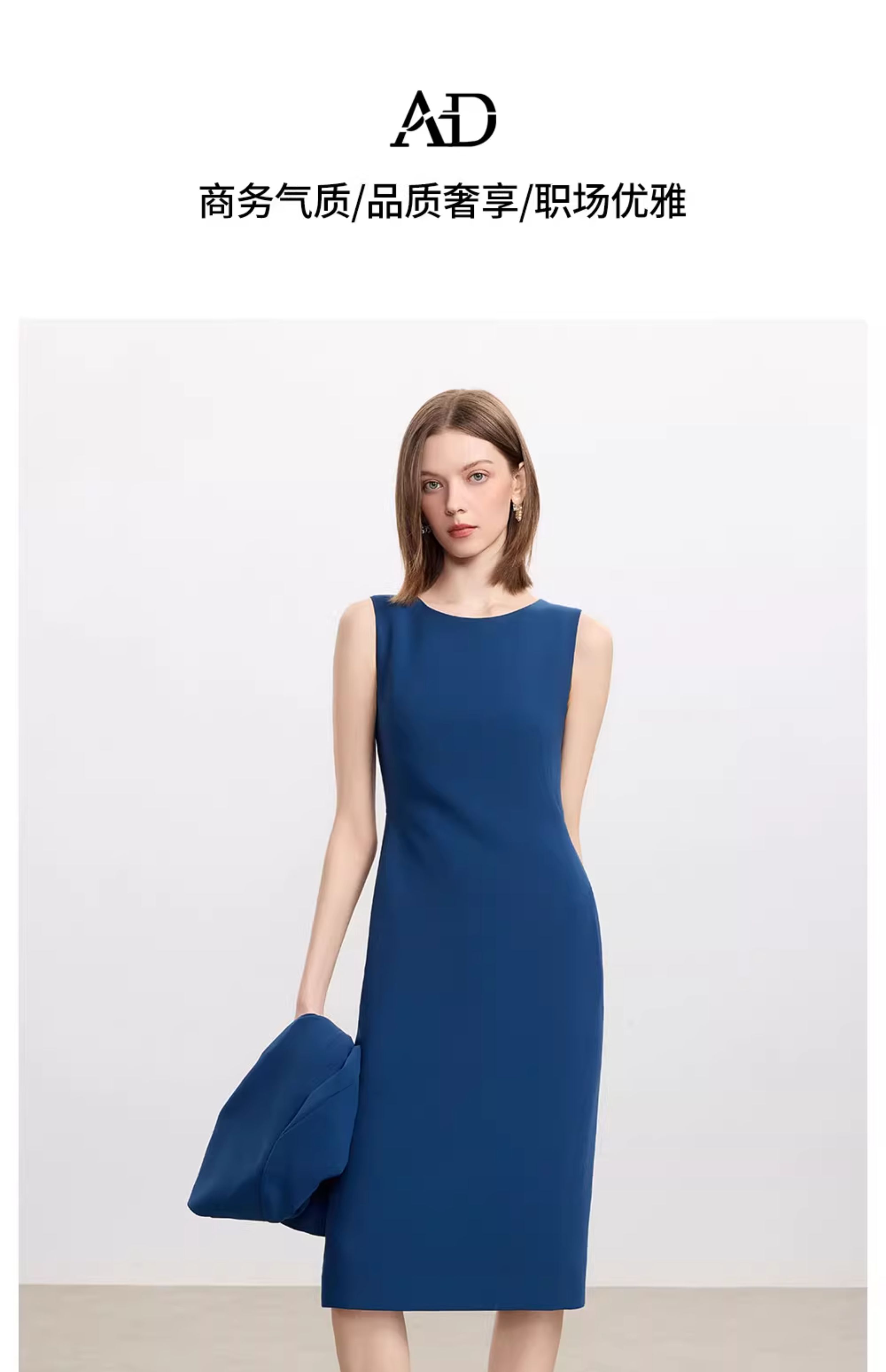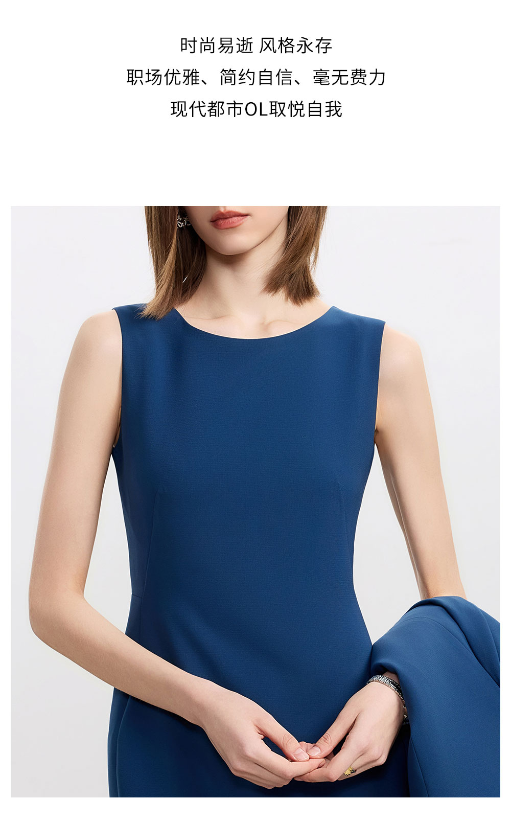 AD高级感蓝色职业连衣裙女士简约通勤西装内搭裙子2025新款背心裙