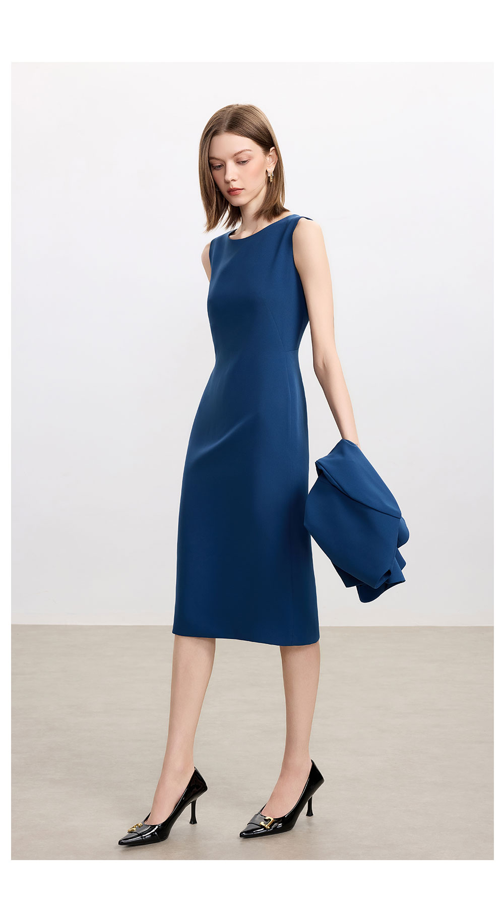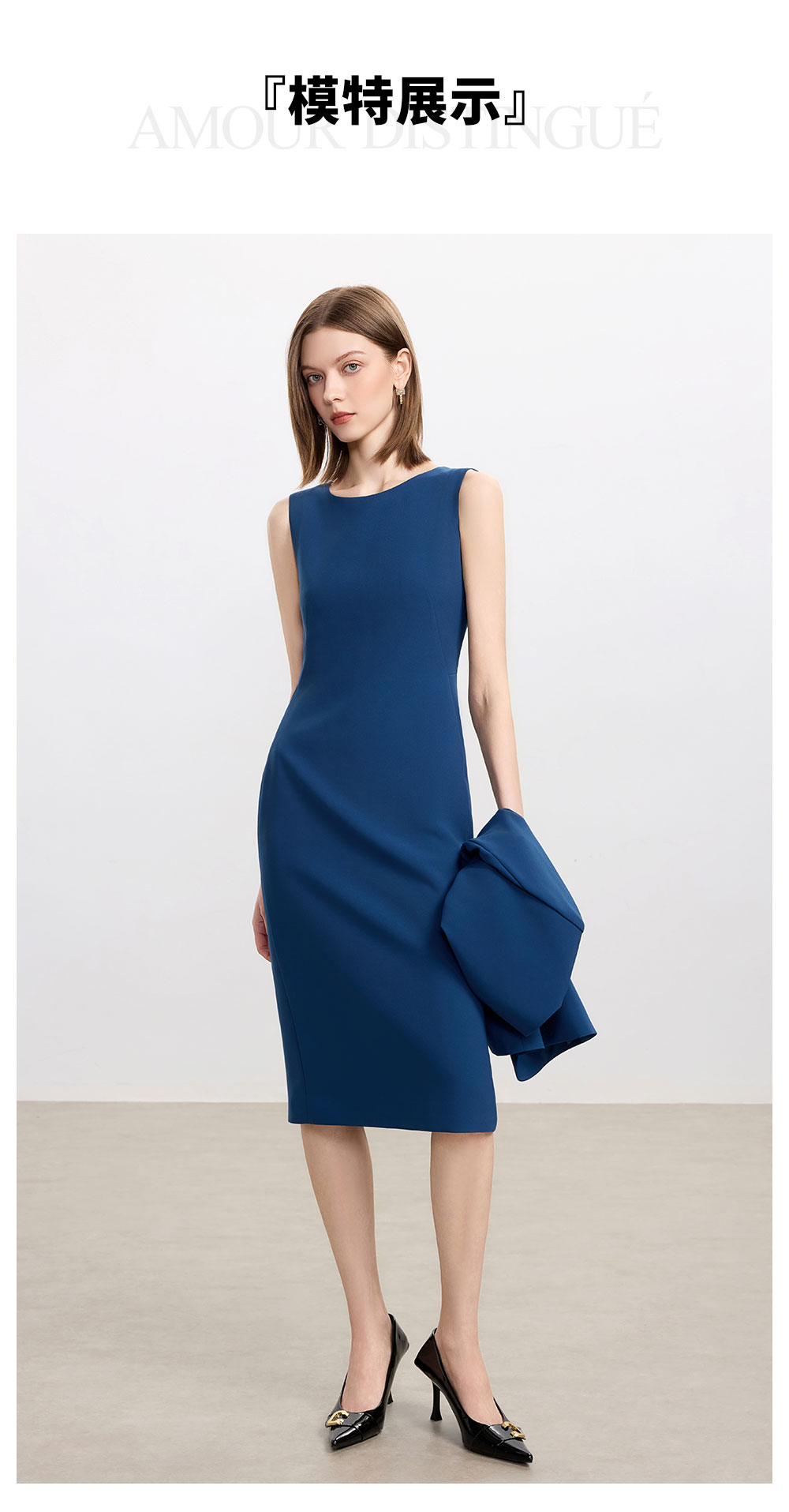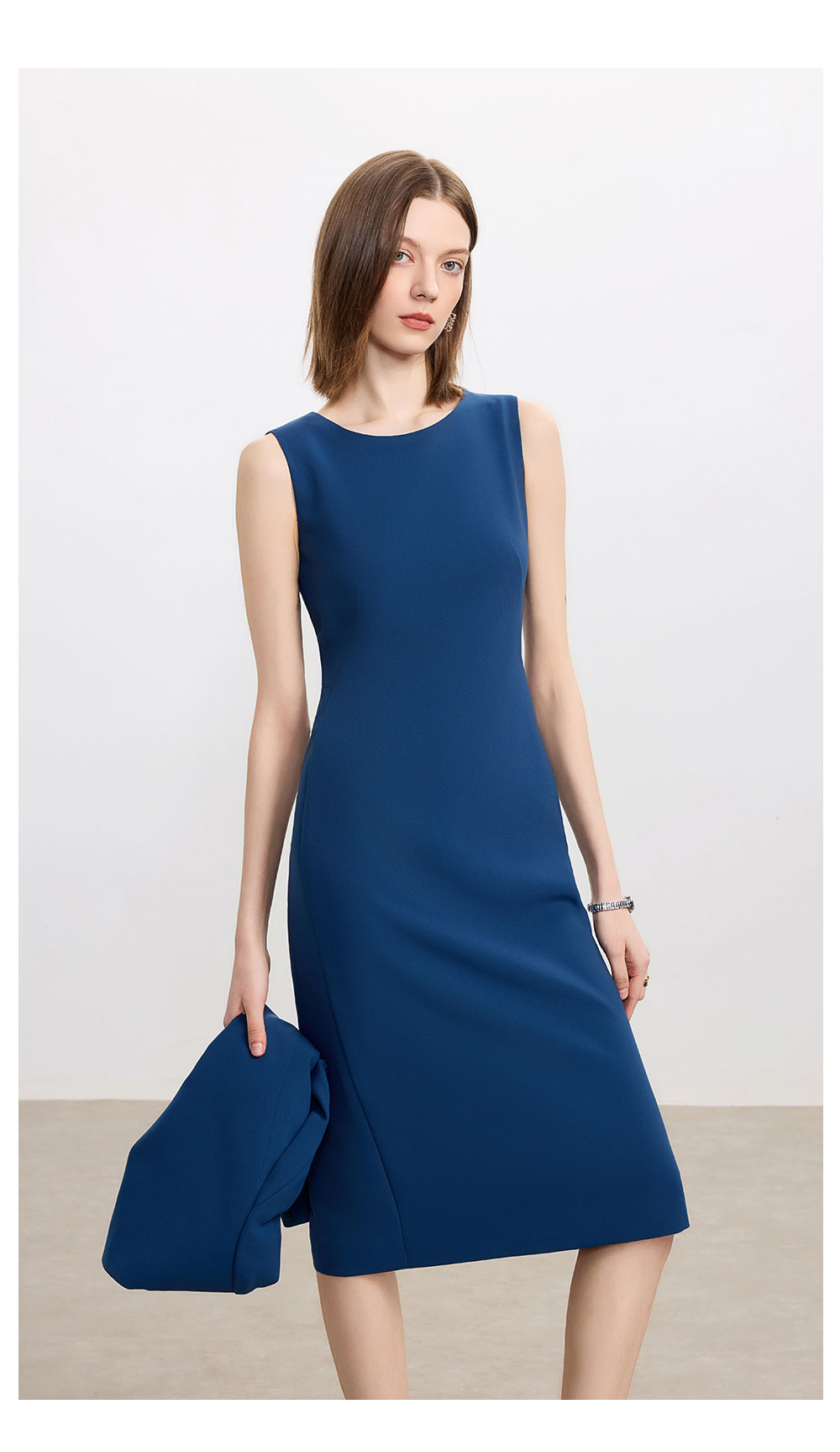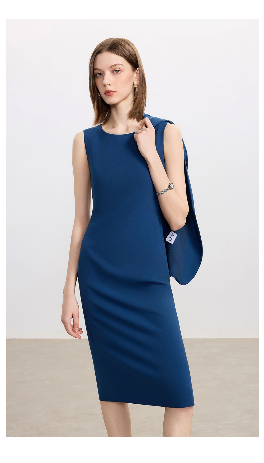 AD高级感蓝色职业连衣裙女士简约通勤西装内搭裙子2025新款背心裙