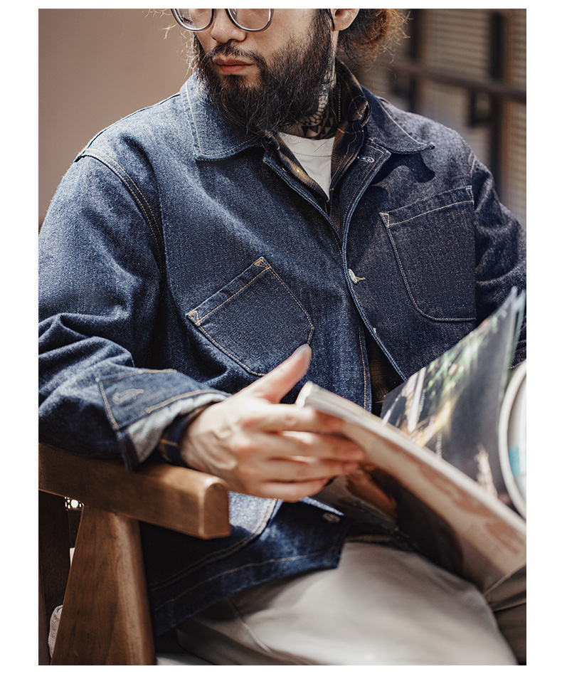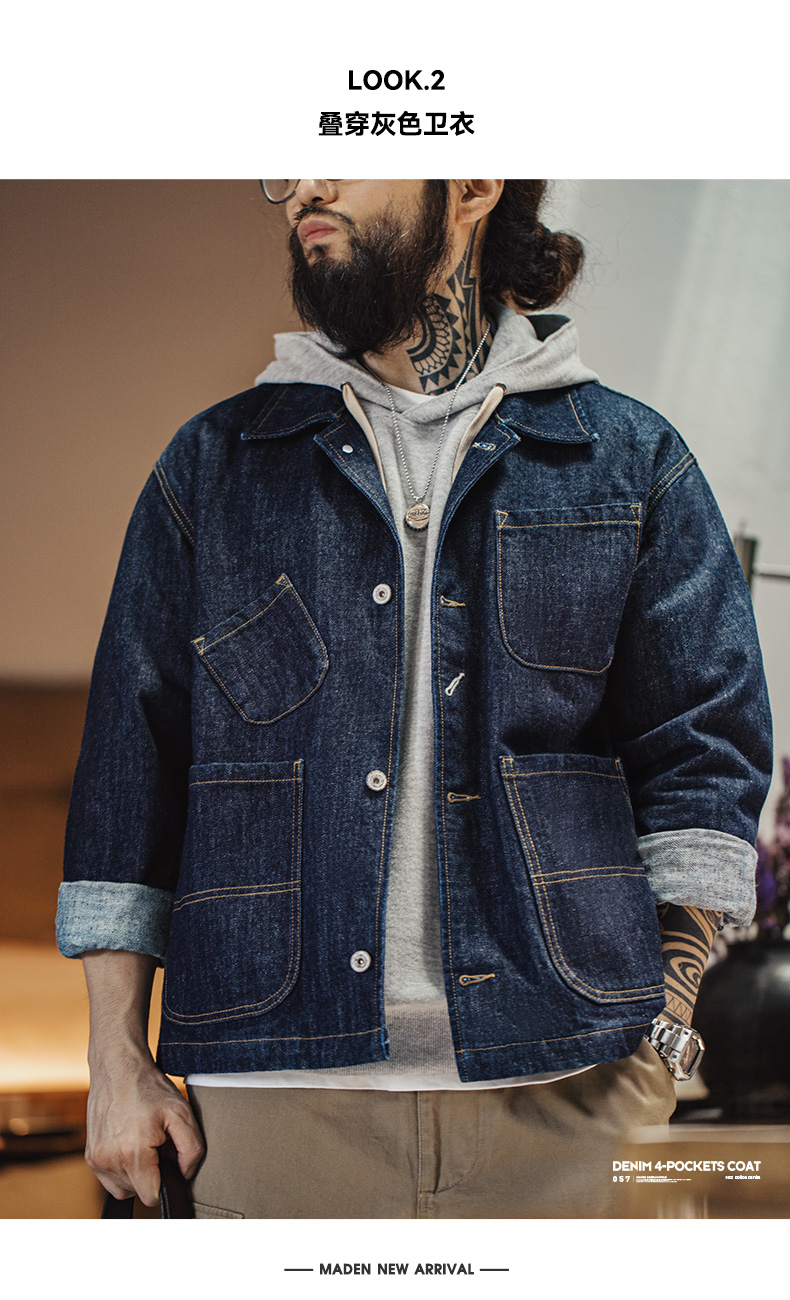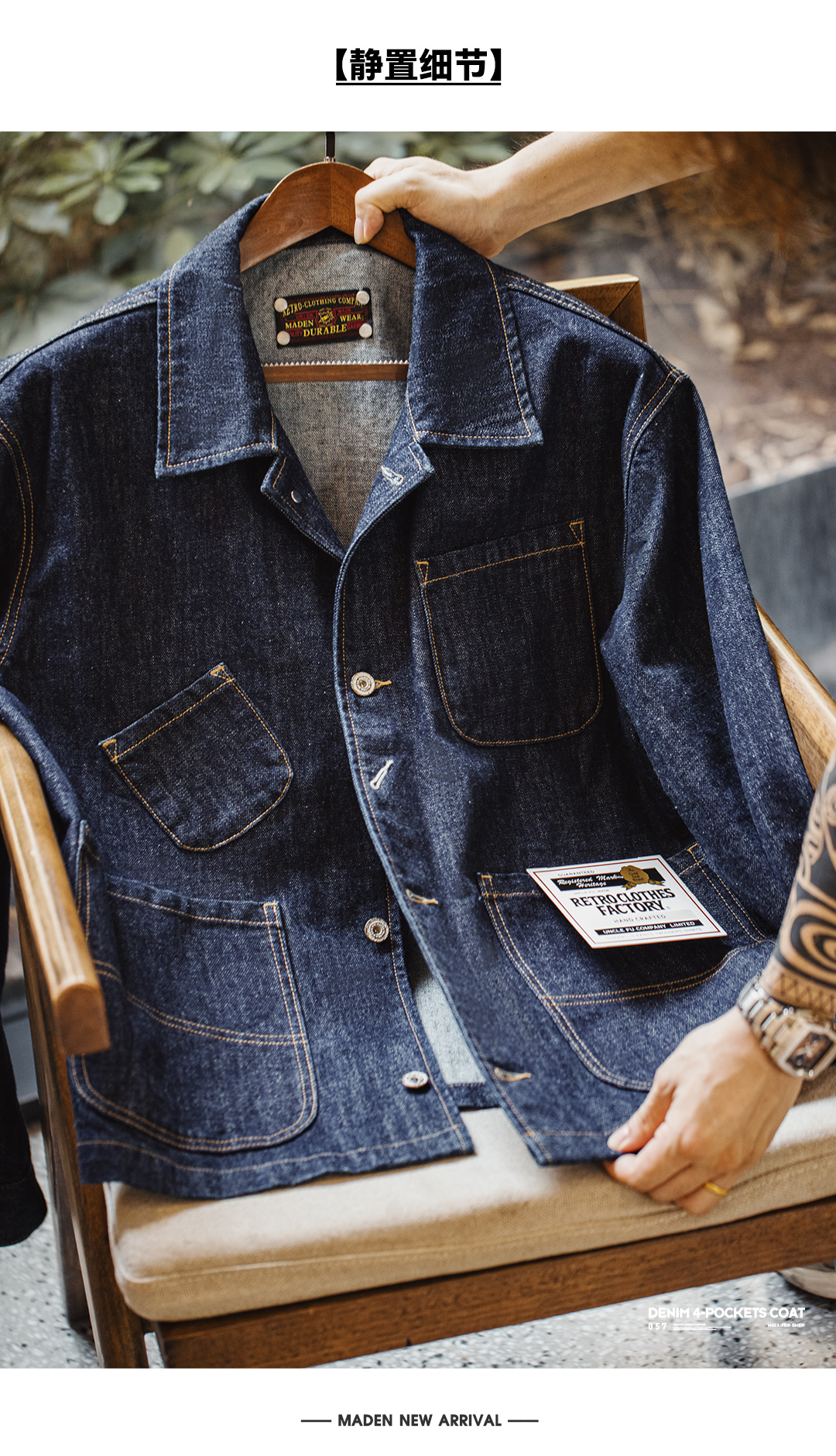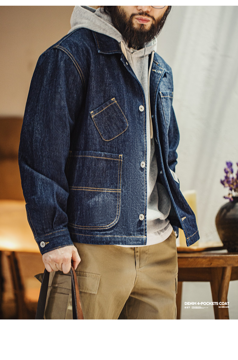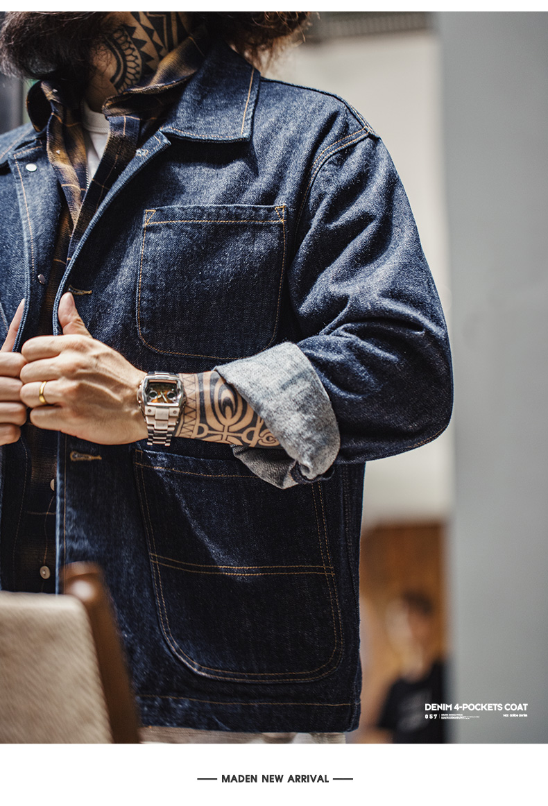 工装优选 日系复古四袋牛仔夹克翻领丹宁阿美咔叽多口袋外套男秋