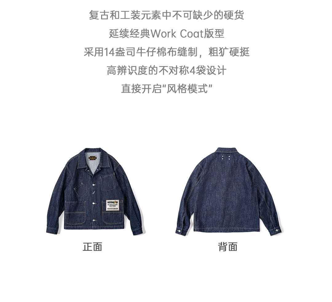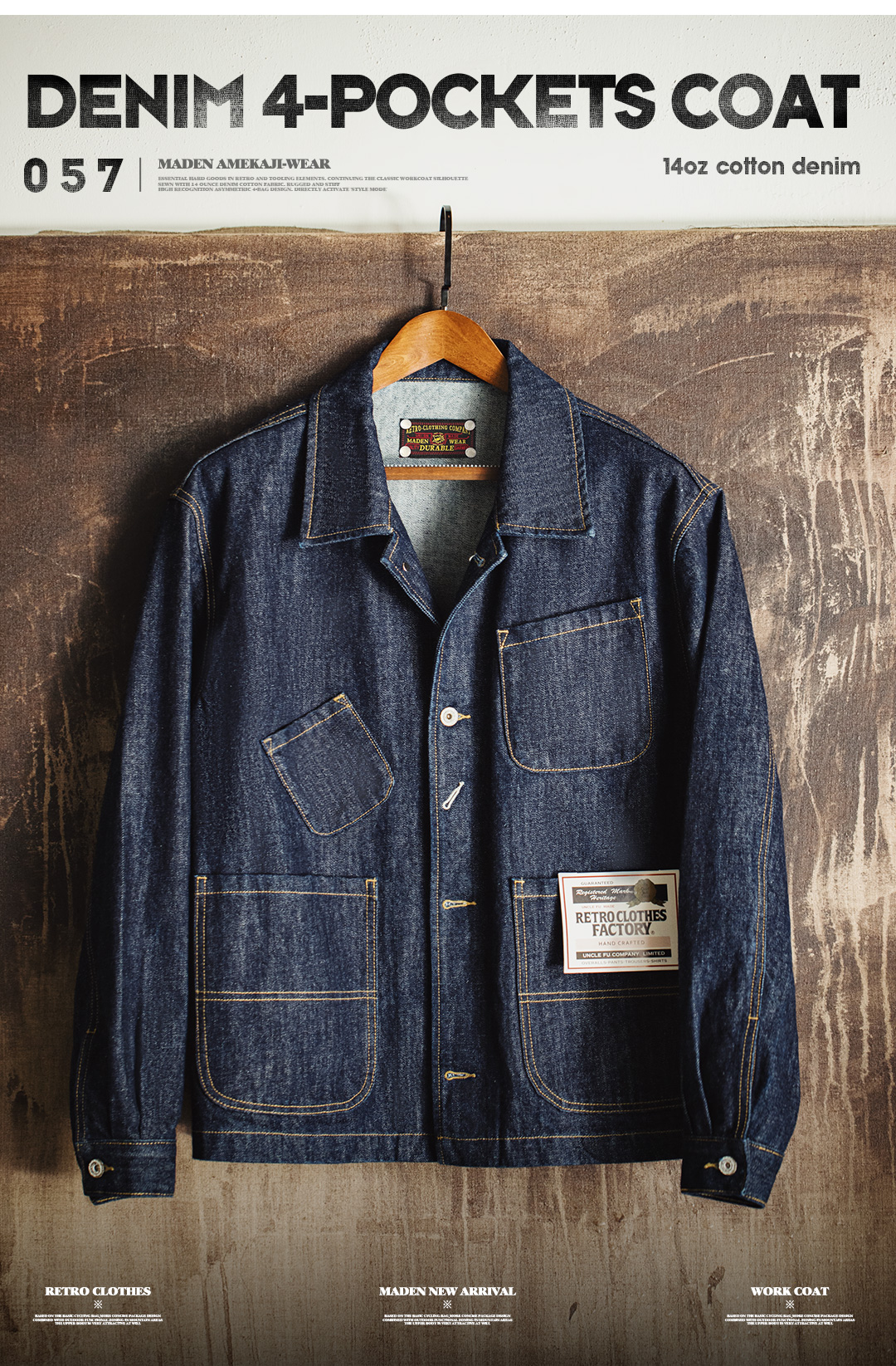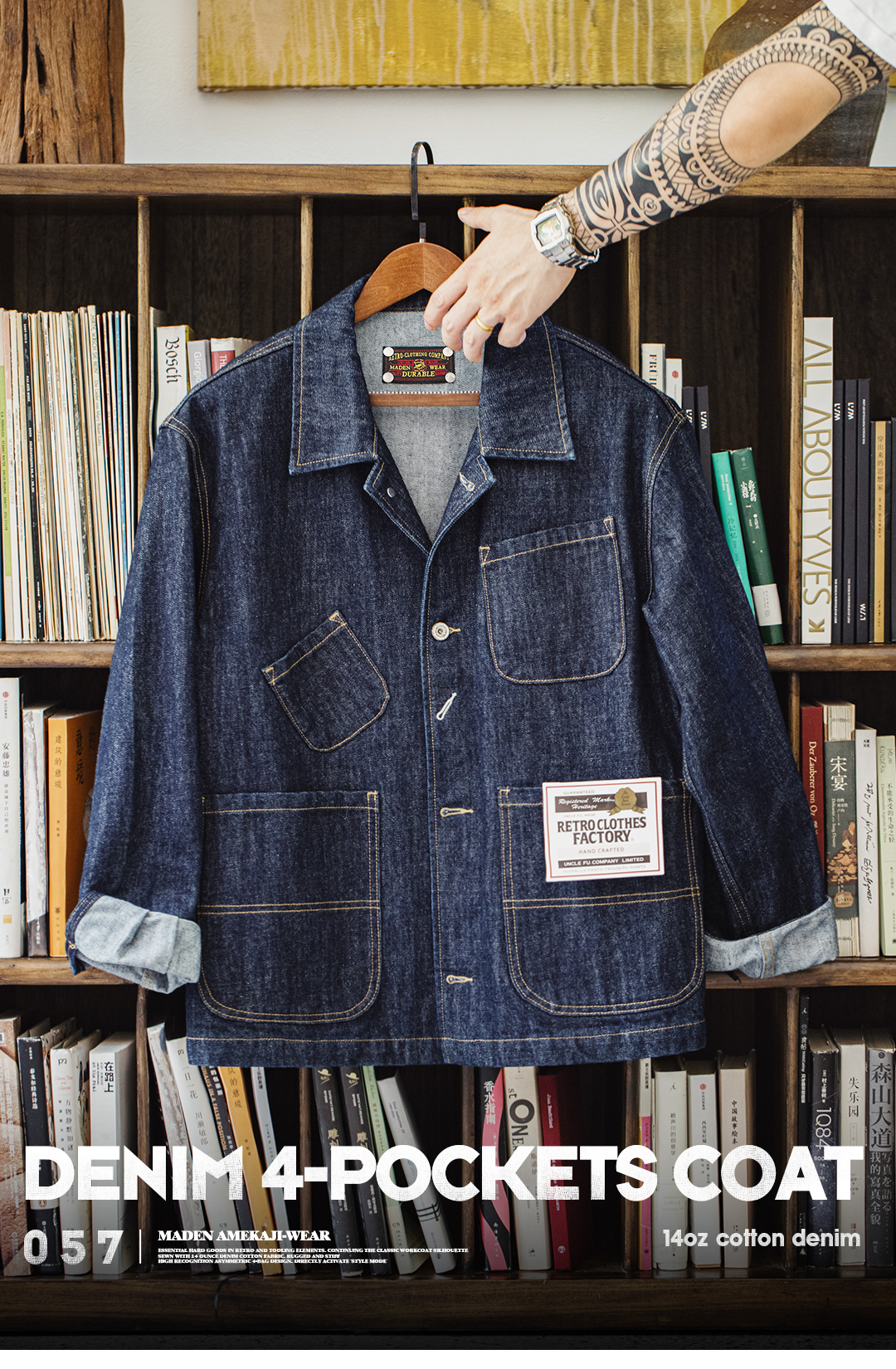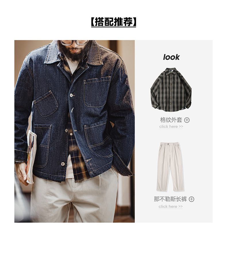 工装优选 日系复古四袋牛仔夹克翻领丹宁阿美咔叽多口袋外套男秋