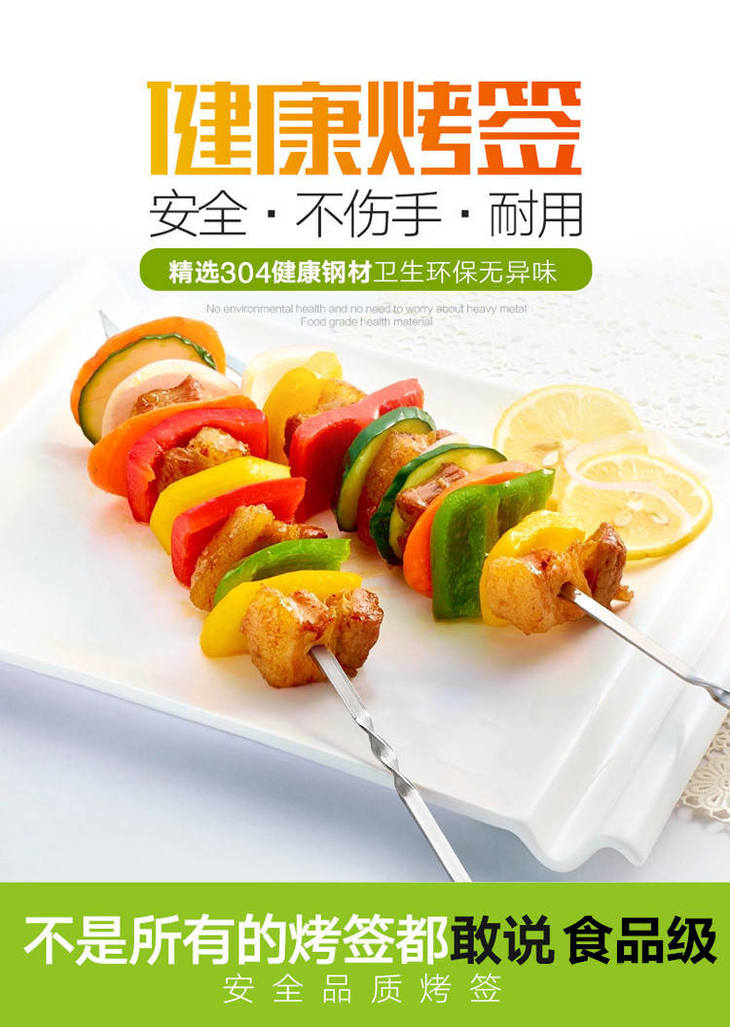 不锈钢烧烤签扁签户外羊肉串烤肉签子钢签铁签圆签全套工具