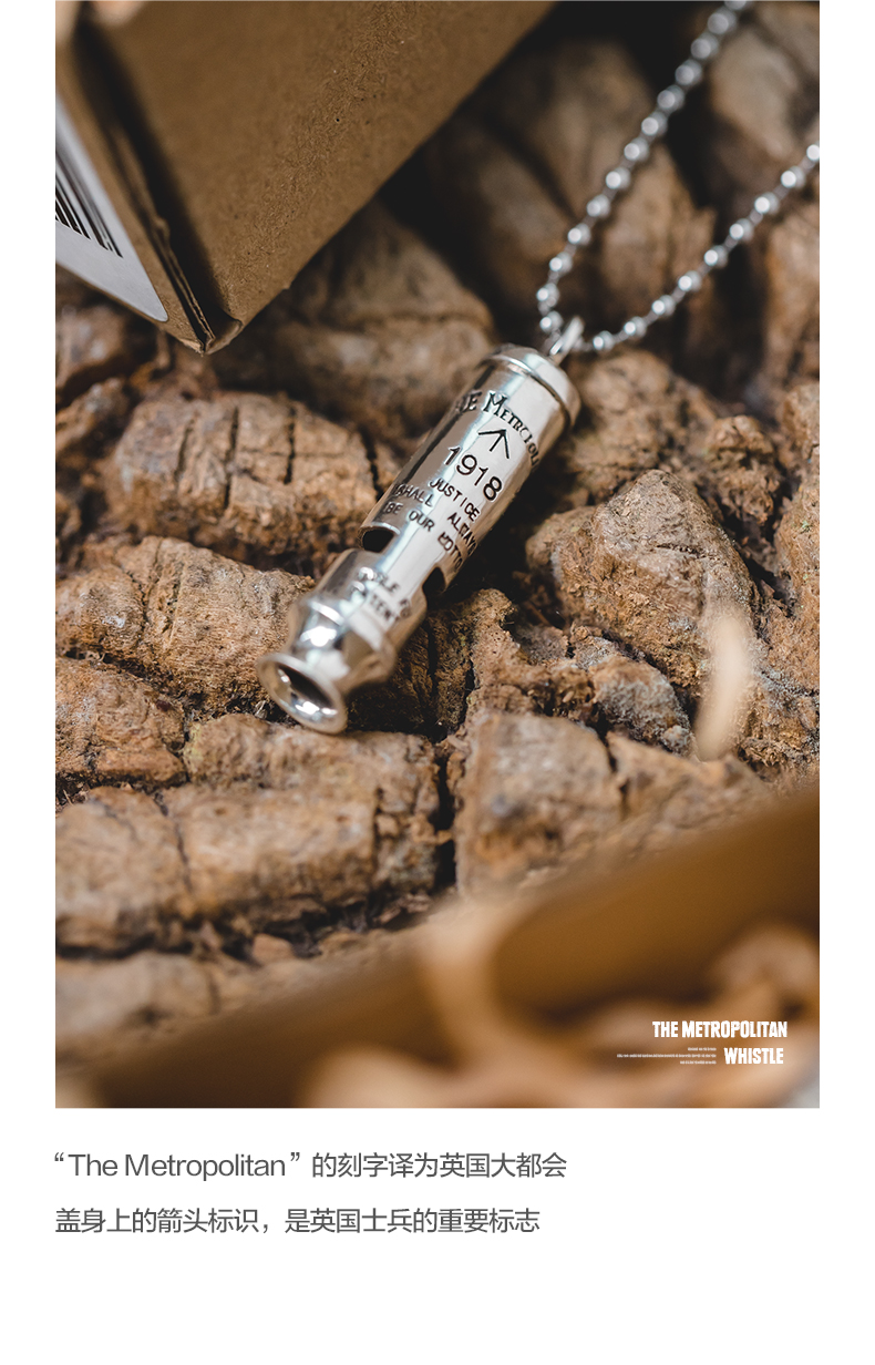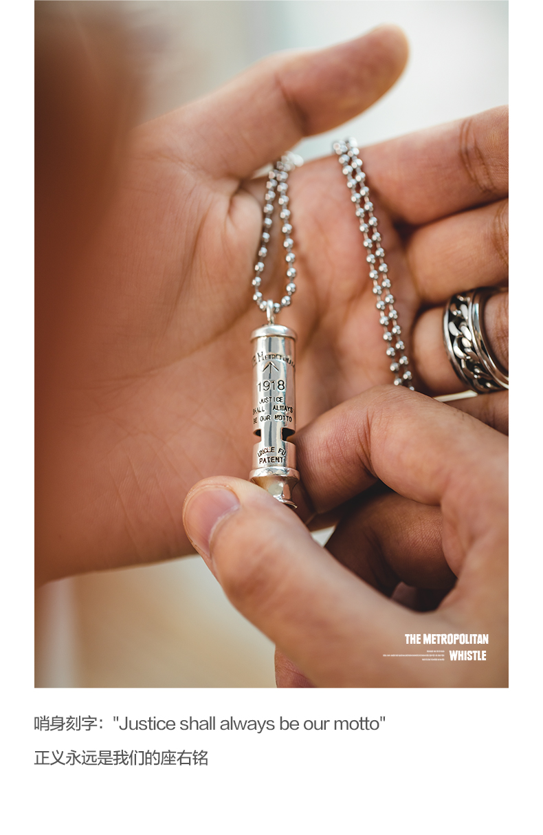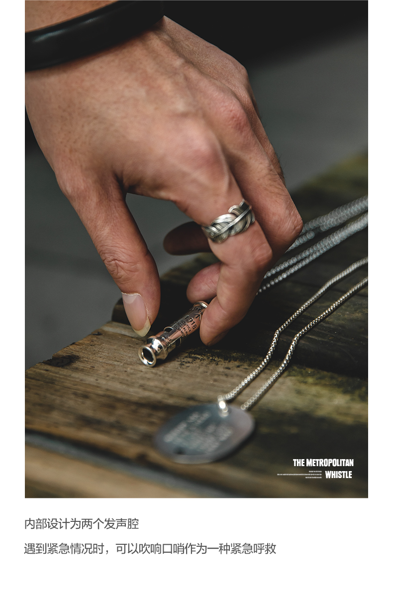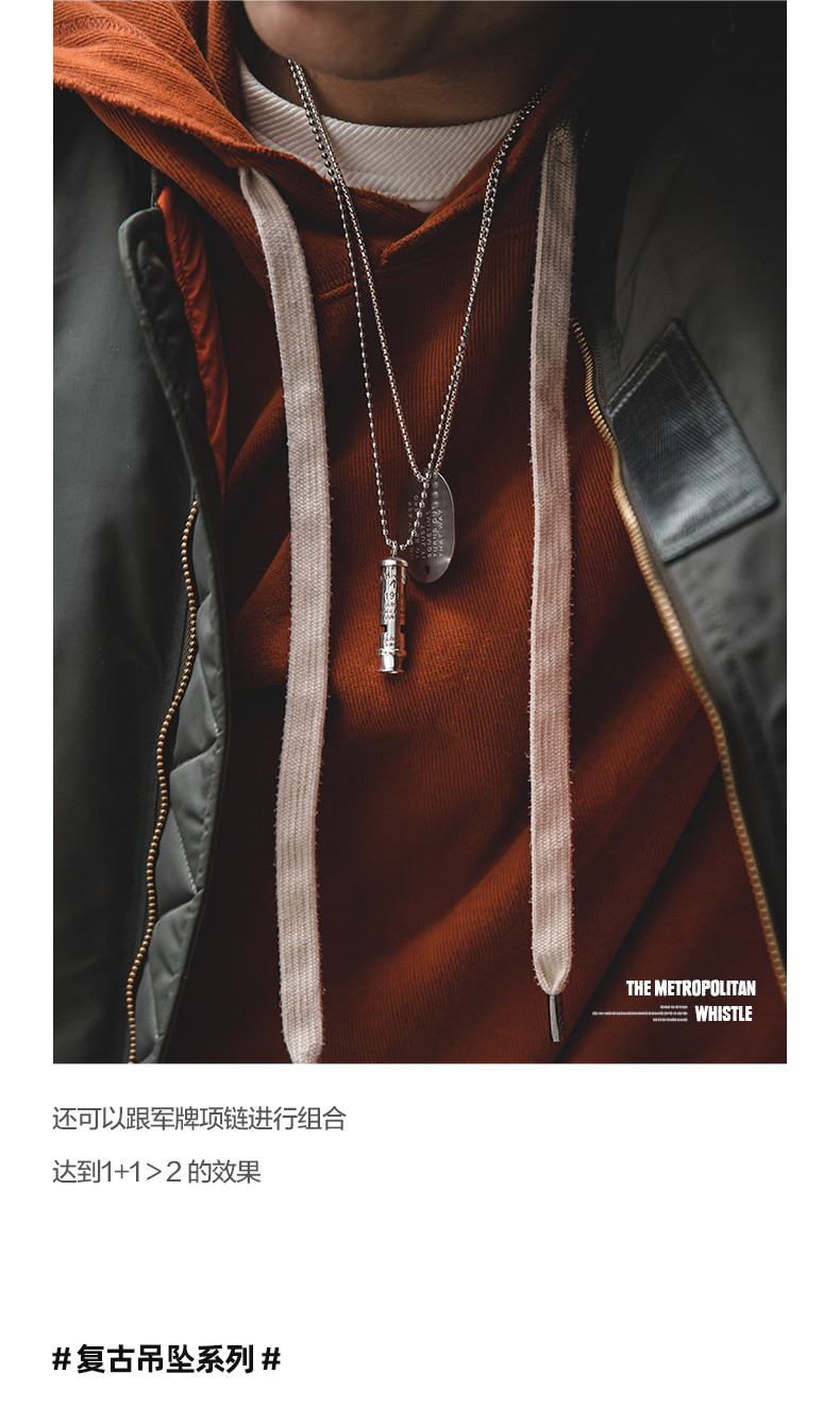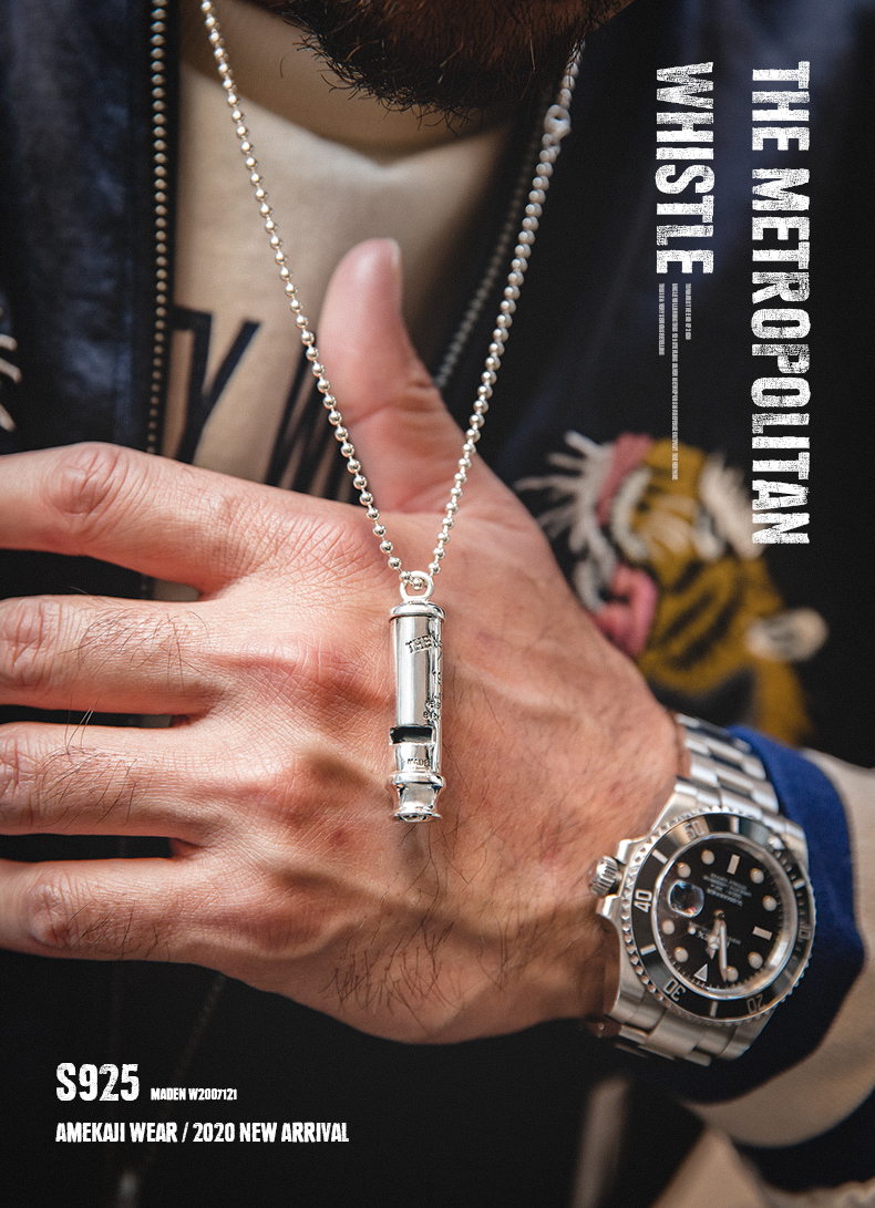 工装优选 美式复古925纯银防空哨可吹响二战吊坠哨子项链男潮声