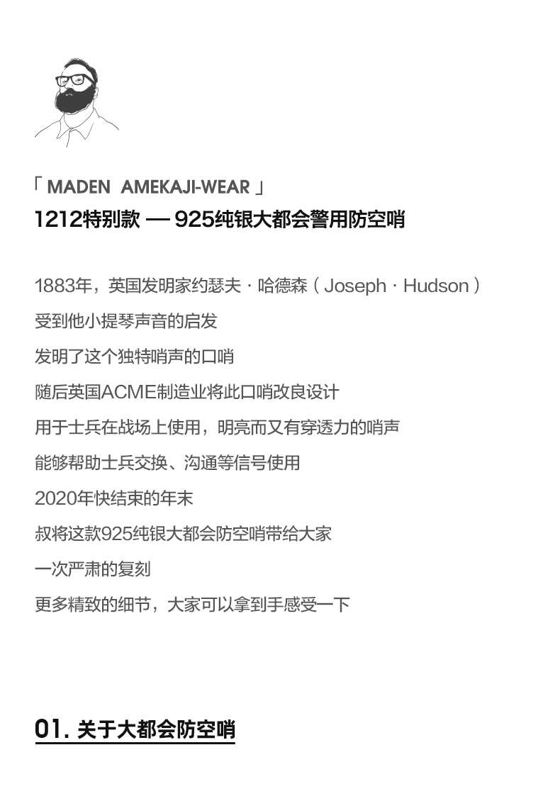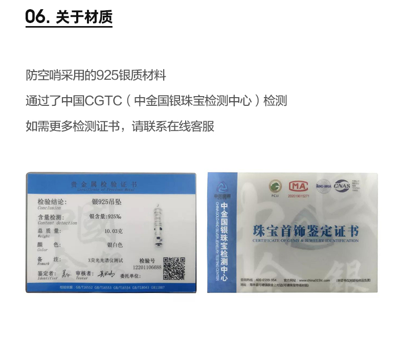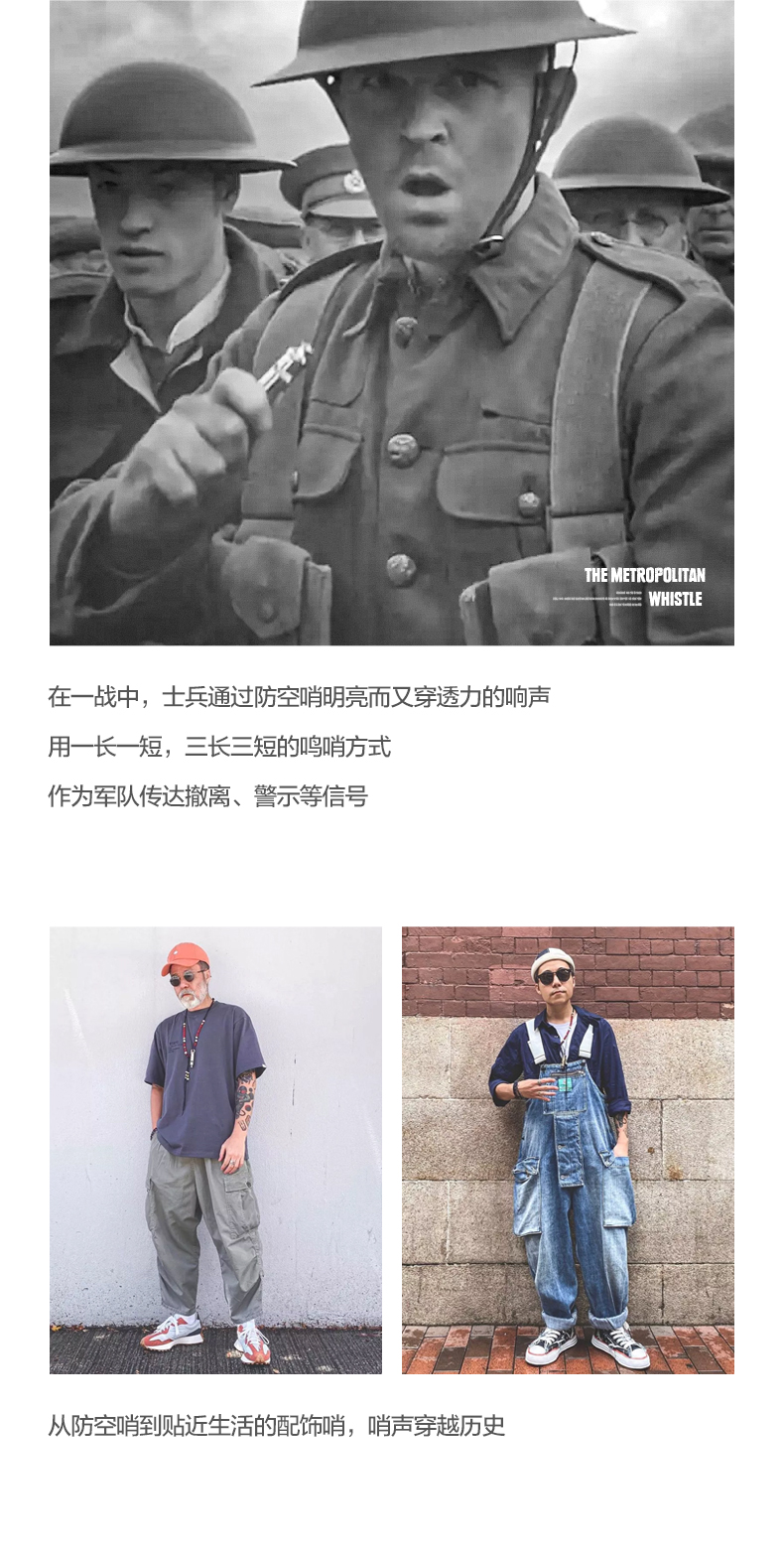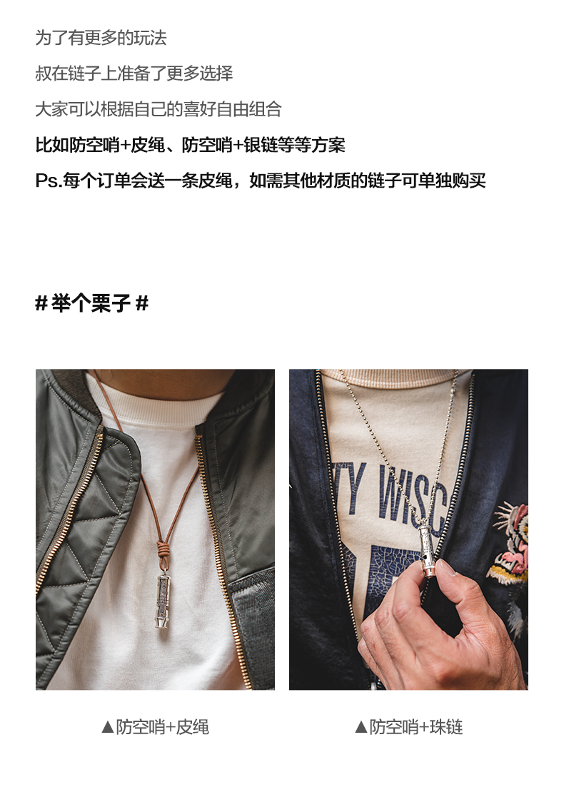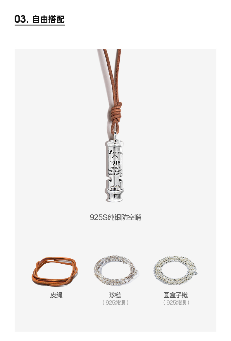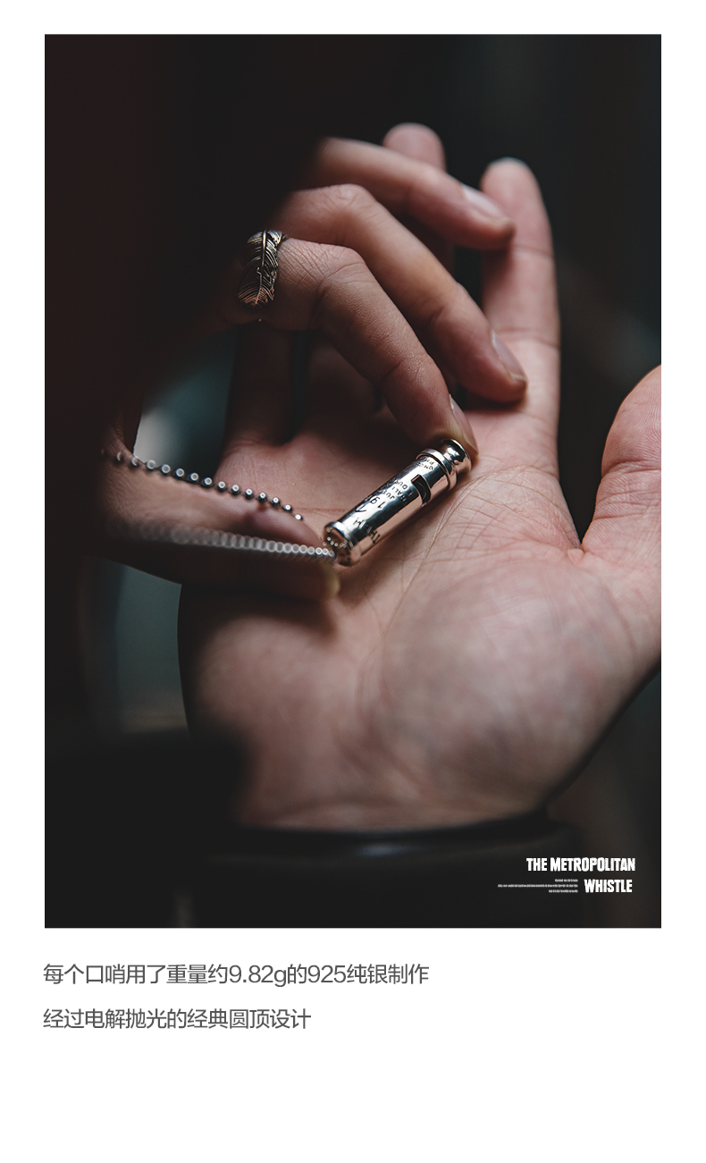 工装优选 美式复古925纯银防空哨可吹响二战吊坠哨子项链男潮声