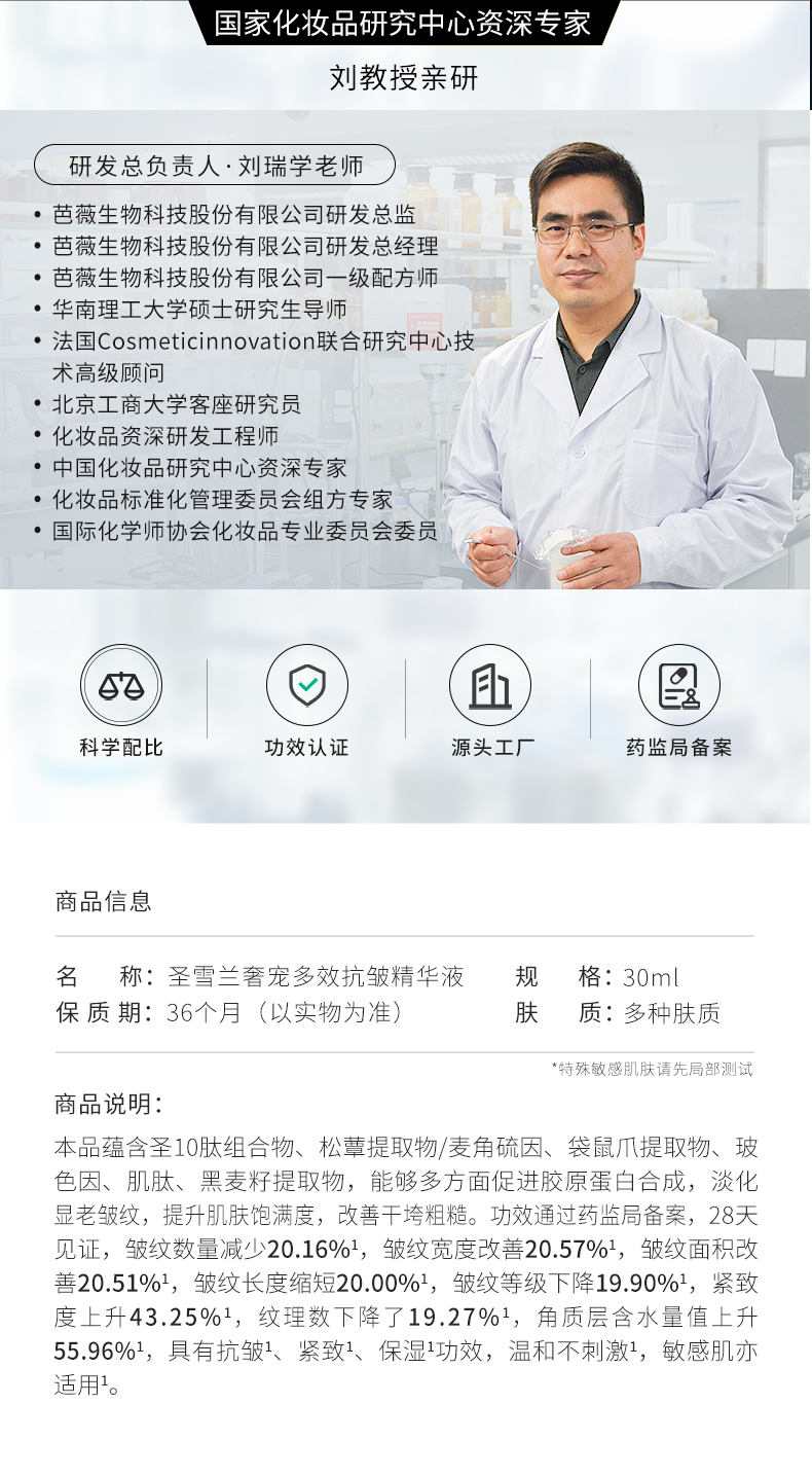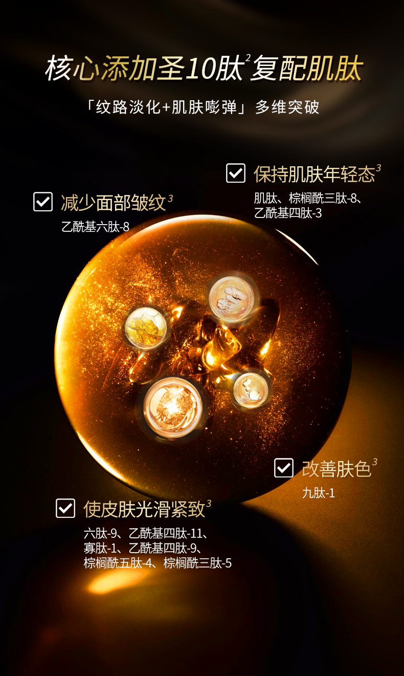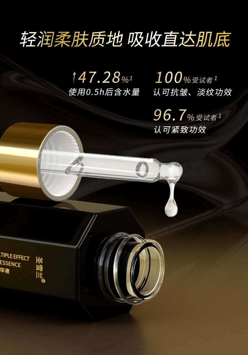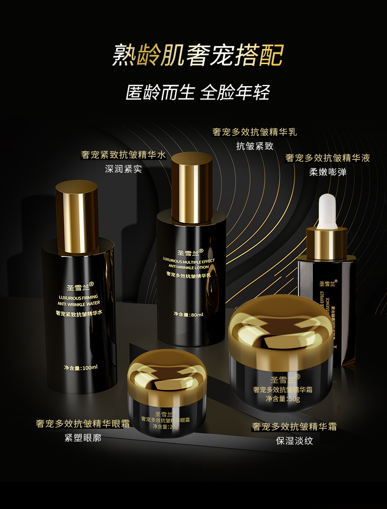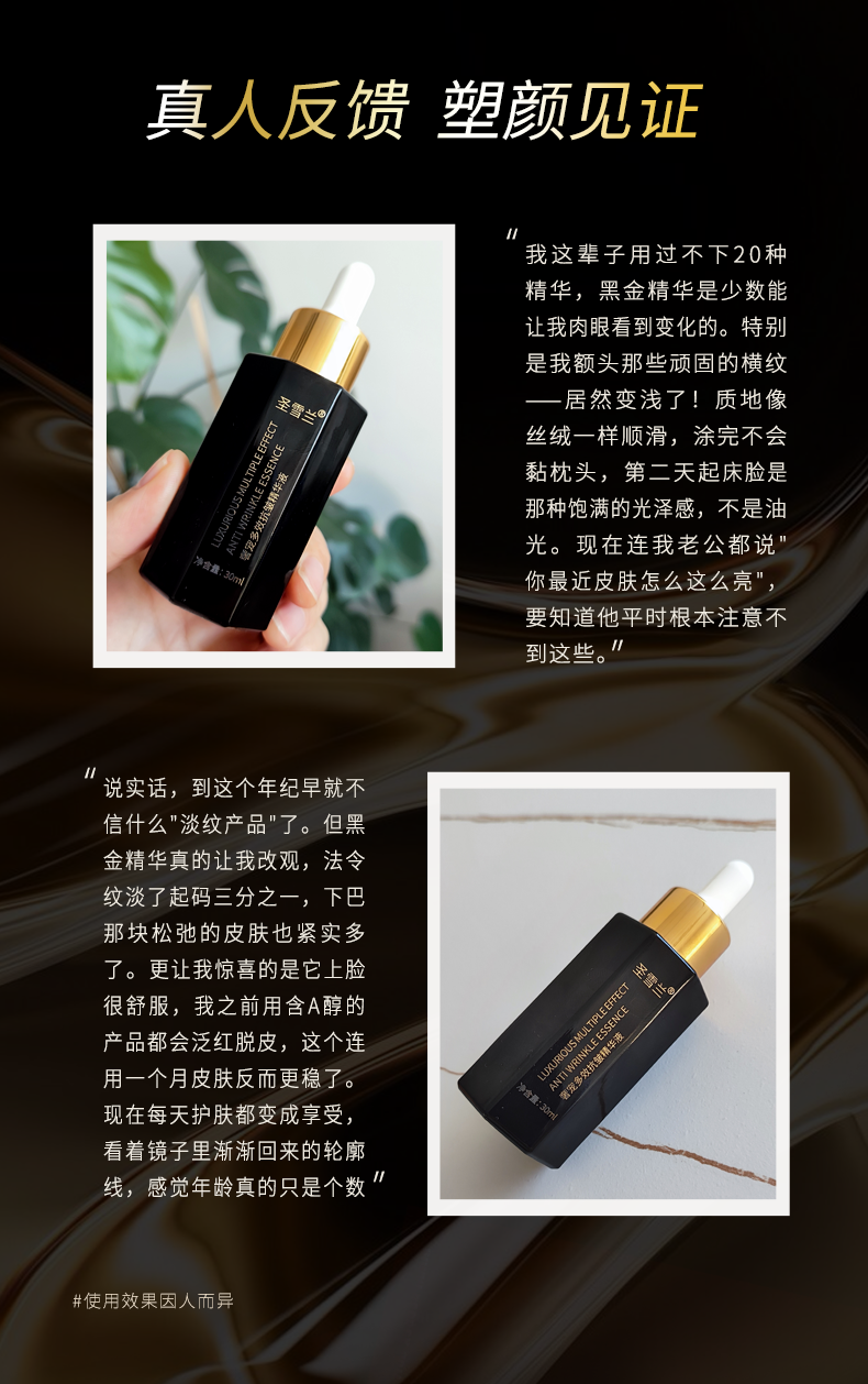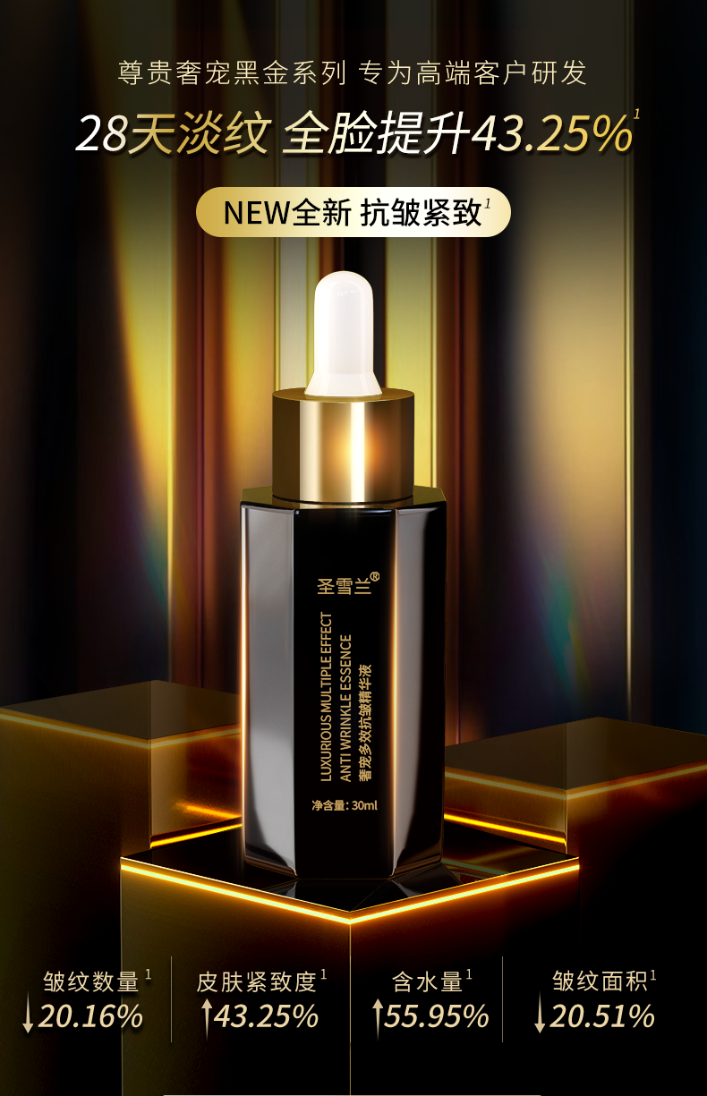 【自营】黑金系列 圣雪兰奢宠多效抗皱精华液30ml 真人28天实测全脸紧致提升43.25% 高阶抗老淡化显老皱纹