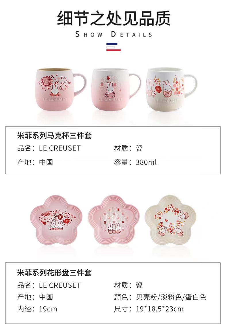 【6F】LE CREUSET酷彩X米菲限量联名炻瓷花形盘马克杯套装
