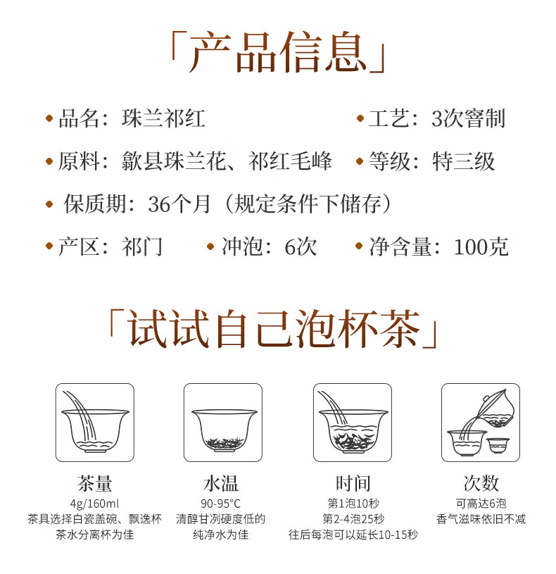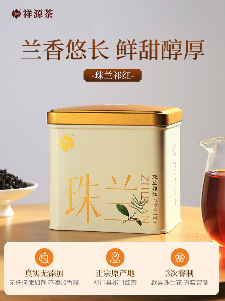 祥源茶丨珠兰祁红毛峰 特级 花茶100g 罐装