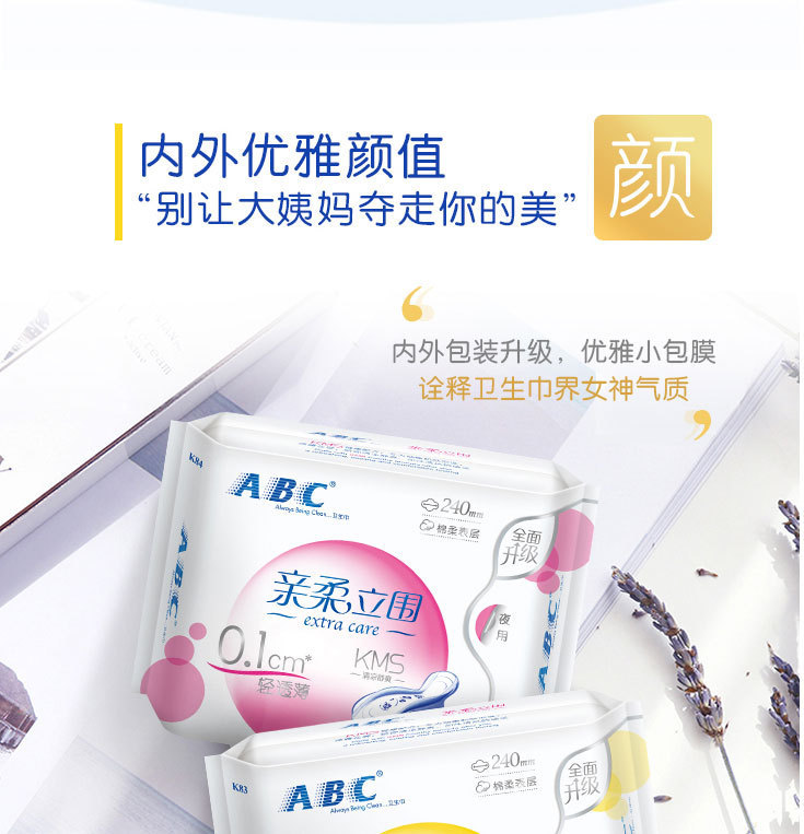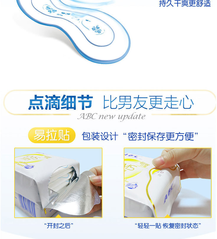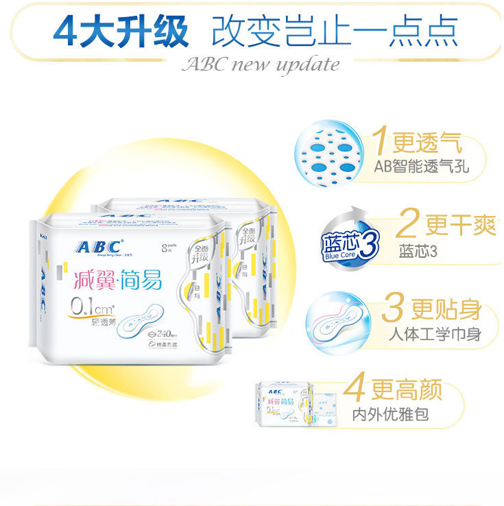 ABC减翼卫生巾240mm*8片超吸超薄棉柔亲肤日用姨妈巾
