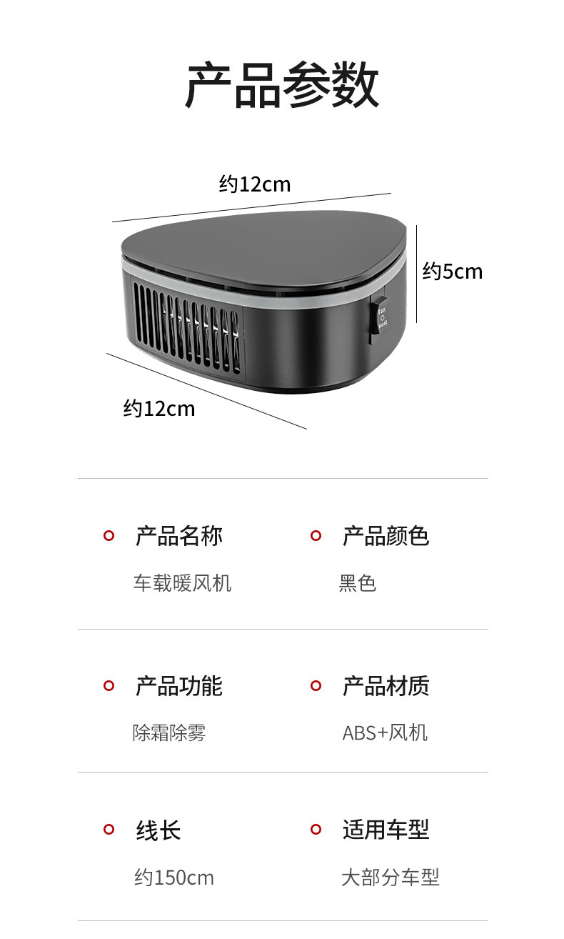 车载暖风机12v汽车电暖风车用加热器 取暖器冷暖风除霜化雪除雾器