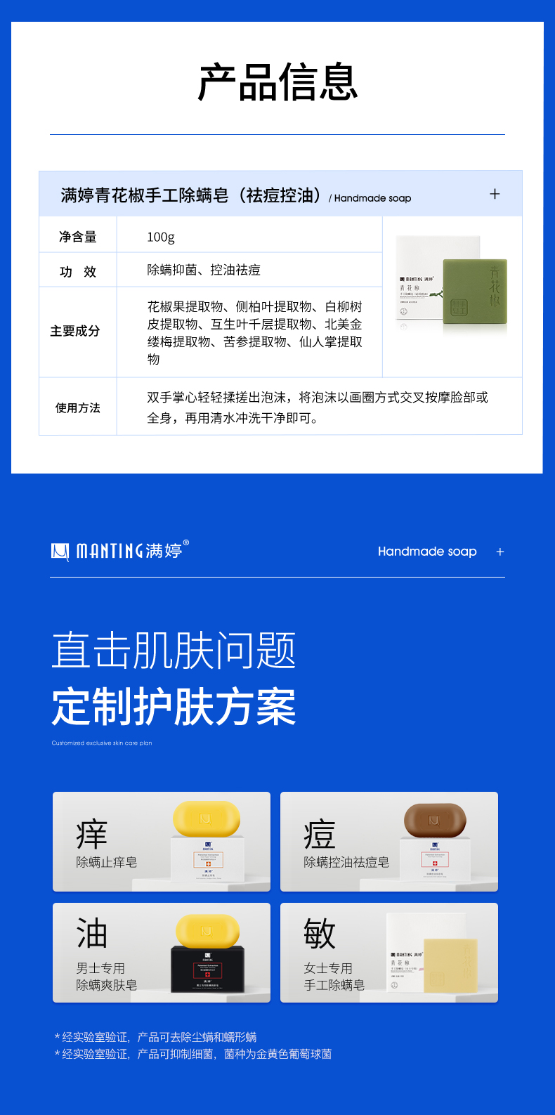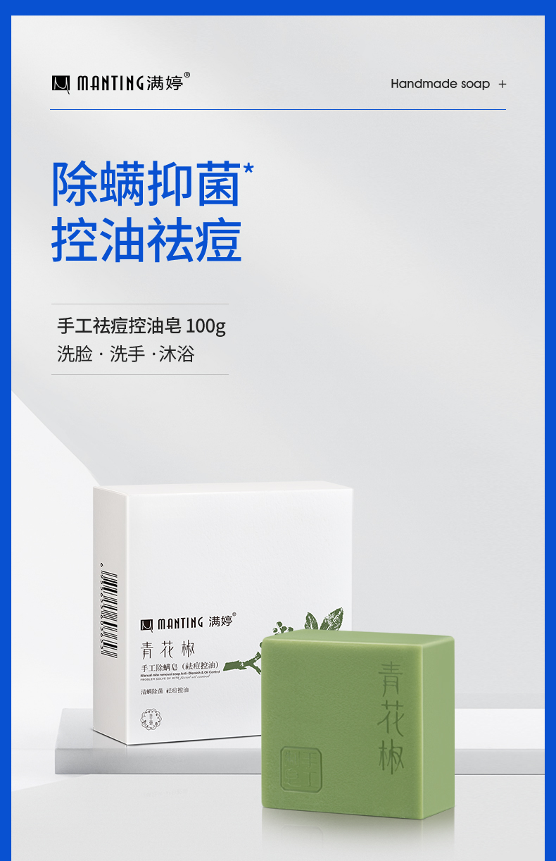 【满婷】实发2块 青花椒手工祛痘控油皂100g 手工精油皂 水润嫩肤