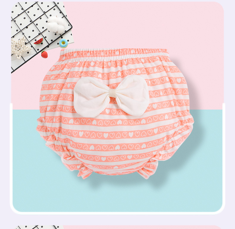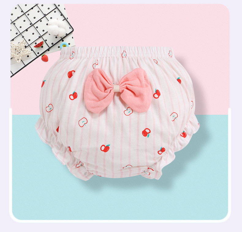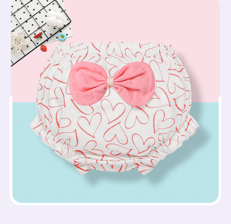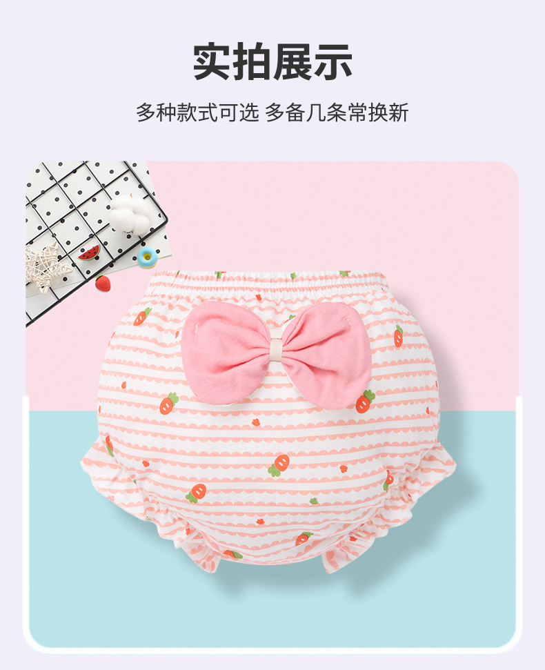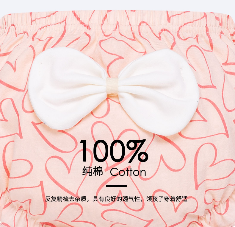 【4条装 萌趣可爱大蝴蝶结面包裤】儿童短裤亚迪酷熊a类全棉宝宝幼儿花苞裤外穿小童花边三角面包裤