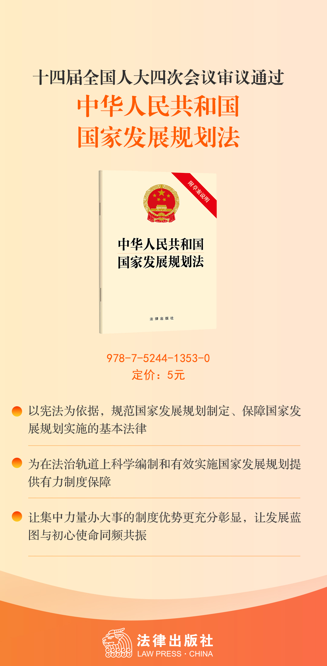 书名:中华人民共和国国家发展规划法(附草案说明) 法律出版社