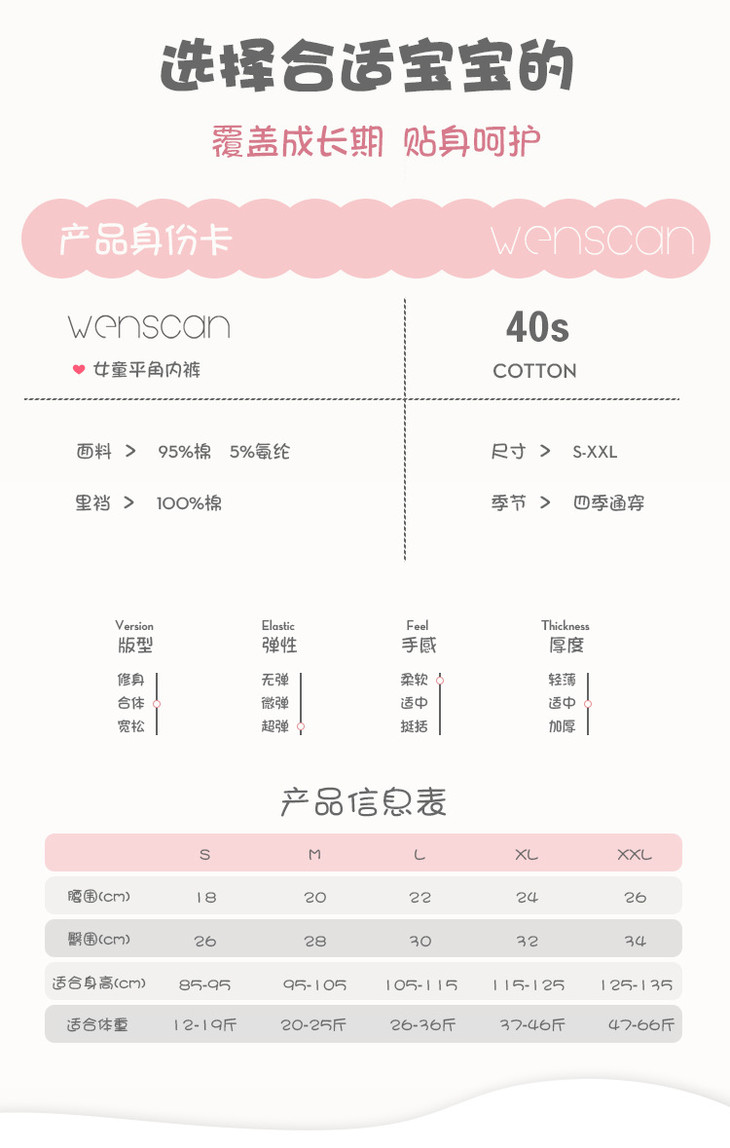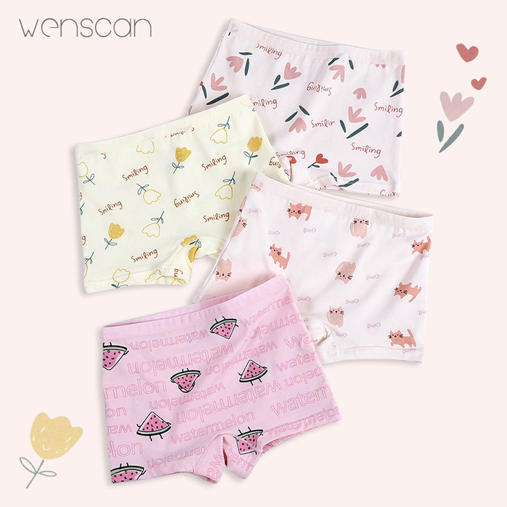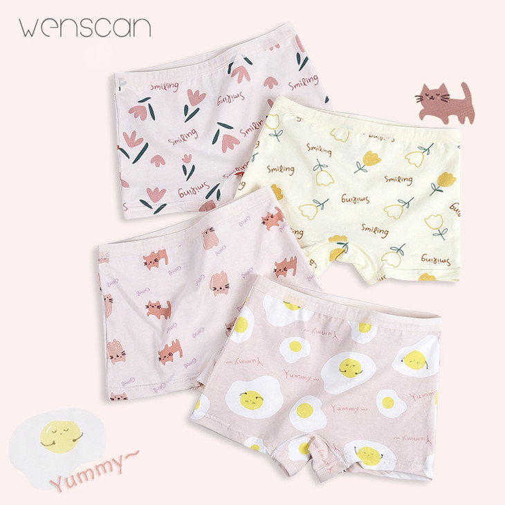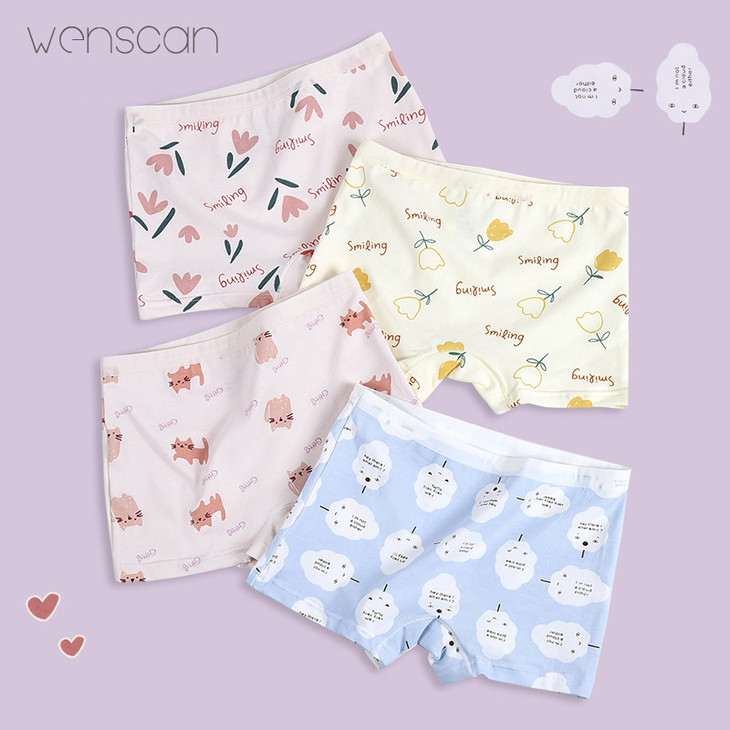 【A类更放心!4条装儿童纯棉内裤】儿童内裤平角裤,婴儿宝宝小学生小孩子中大童女童全棉短裤