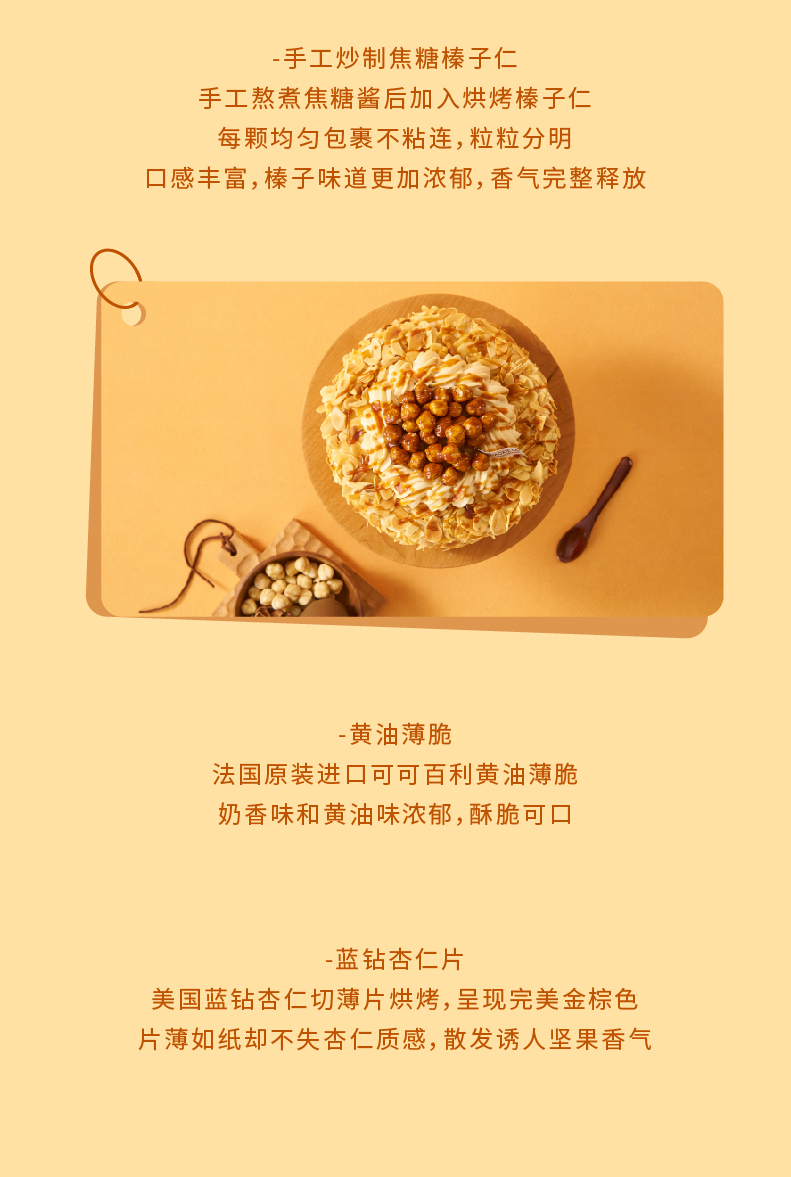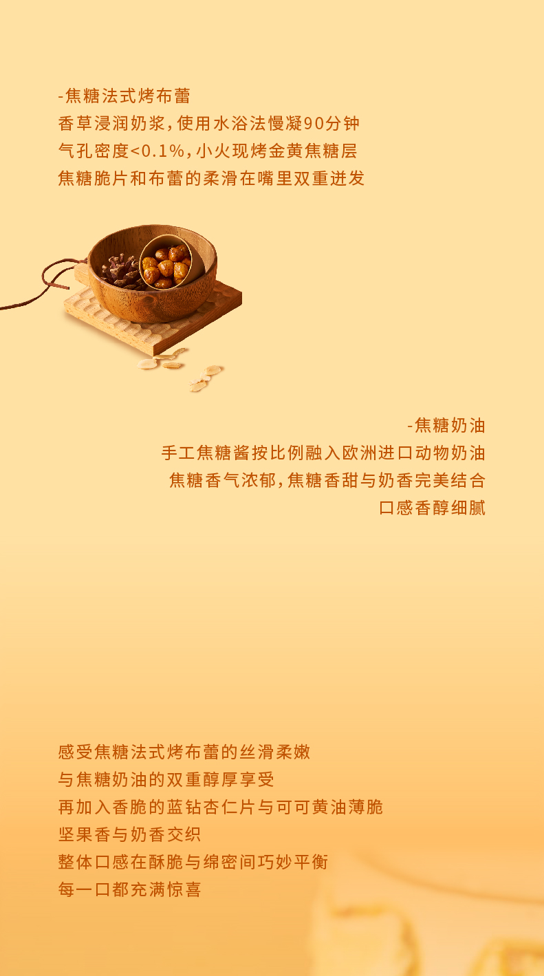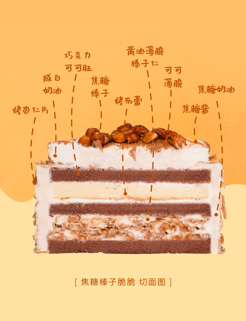 【焦糖坚果曼特宁】咖啡奶油与焦糖坚果的融合,融入芒果香甜,再覆盖一层巧克力淋面,幸福感爆棚