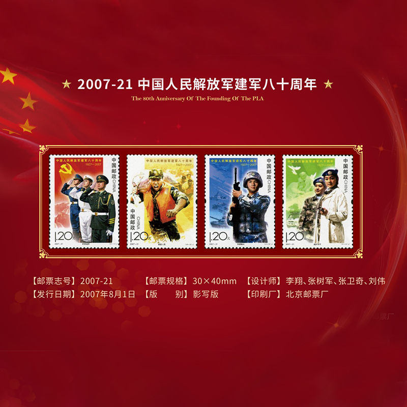 包含4套我国发行的建军60、70、80、90周年邮票,一枚面值10元的建军90周年普通纪念币,以及一枚含999银2克的纪念银卡。这张银卡还是经南昌八一起义纪念馆荣誉授权!尺寸:160×80mm。