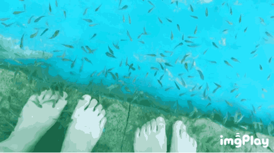 汤池中的小鱼不断啄食人体老化皮质