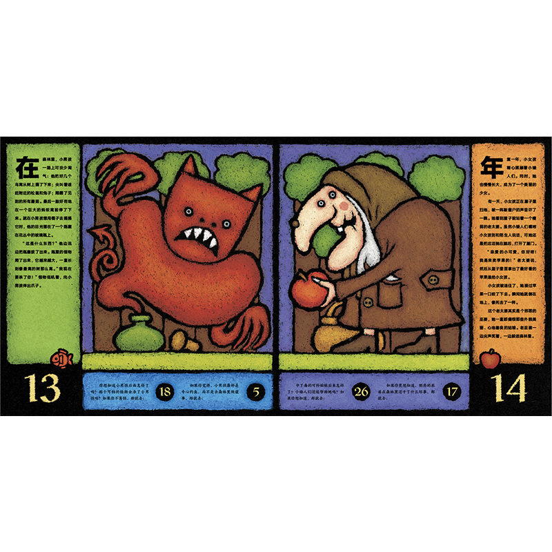 ★ 作者在每个跨页都留下了两个不同选择,并把不同选择对应的页码标在旁边,这样孩子就可以按照自己的想法“创造”全新的故事了。这种创作形式,不仅可以让孩子在互动中获得乐趣,还能鼓励他们跳出经典的局限,进行独立的判断、思考。