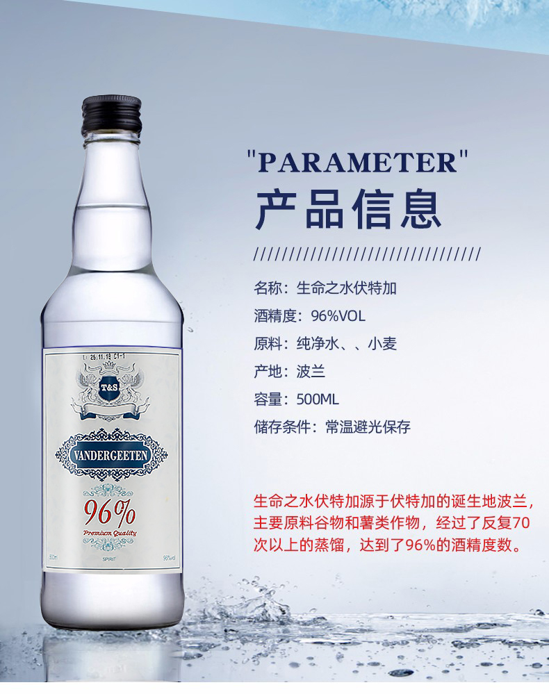 波兰生命之水高度烈酒绝对伏特加 500ml*1瓶