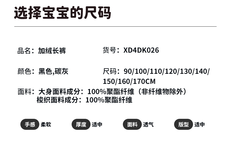 迪士尼冬季女童加绒长裤XD4DK026