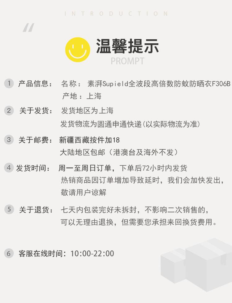 素湃Supield全波段高倍数防蚊防晒衣F306B 宽松版型 面料顺滑 时尚百搭