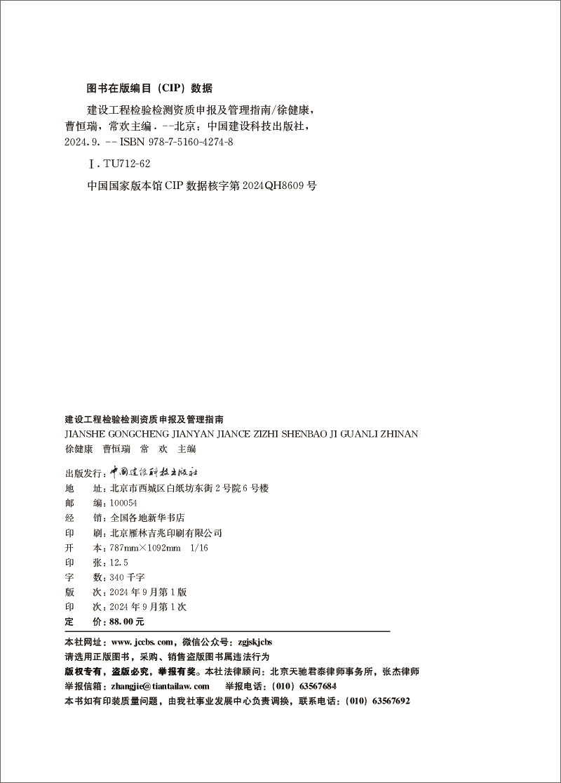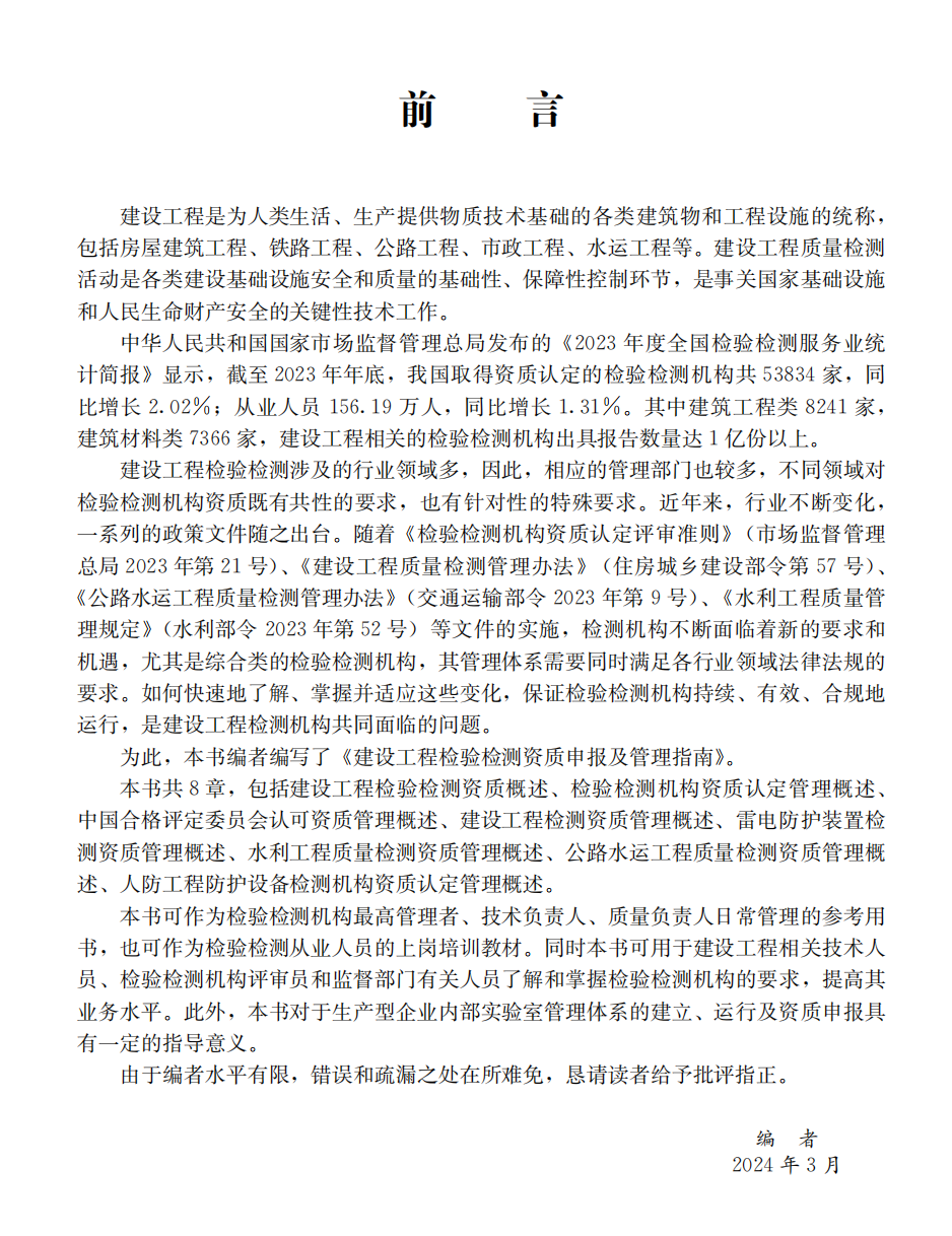 建设工程检验检测资质申报及管理指南/徐健康, 曹恒瑞,常欢主编:中国建设科技出版社, 2024 ISBN9787516042748