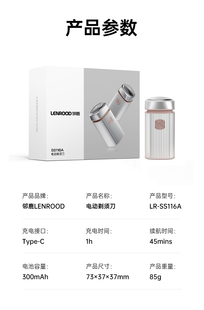 【男人的第二张面子】邻鹿SS116电动剃须刀 TypeC充电 旅行便携式水洗剃须刀