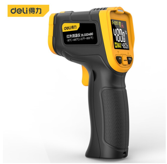得力DL333480红外测温仪彩屏-30℃~480℃(黄)