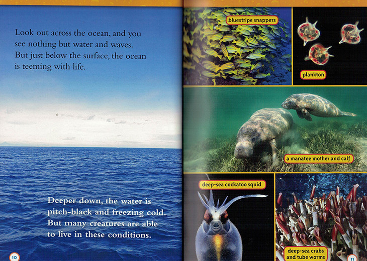 Level 3是高的级别,每本书48页,以短文为主,图片为辅,从内页图可以看出文字量和句子长度都明显上去了。孩子读到这里,基本可以流利阅读一般的科普读物了。虽然是非虚构类读物,但为了让孩子更容易读懂,这个级别的描述更加像一个个“小故事”,增加了很多细节的描写,趣味性更强,更高程度锻炼孩子的阅读理解能力。