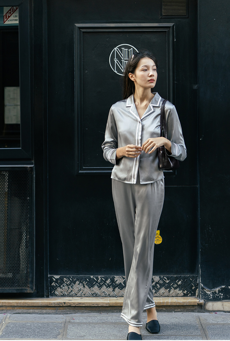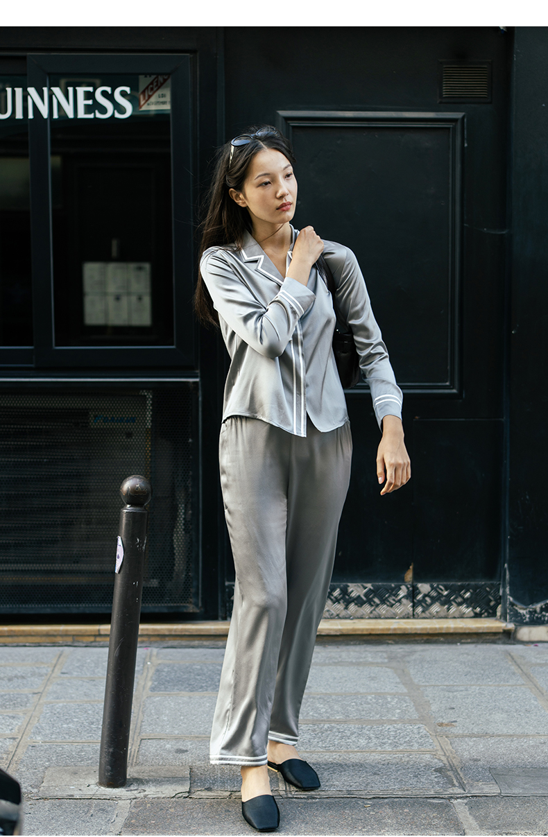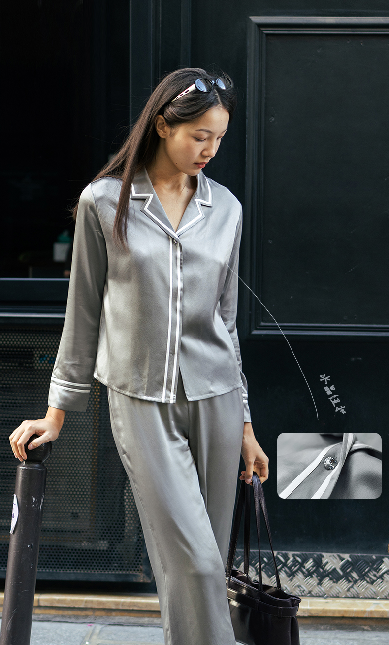 重磅真丝桑罗25姆米真丝睡衣套装100%桑蚕丝女秋季家居服双面缎可外穿