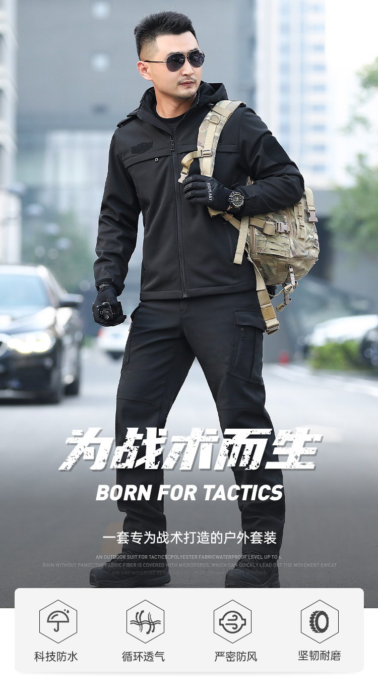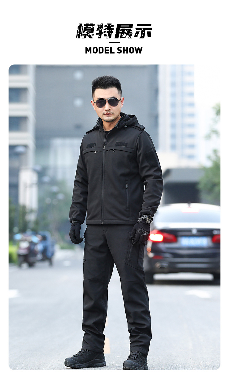 【软壳战术通勤套装】冬季户外通勤加绒套装 战术训练服