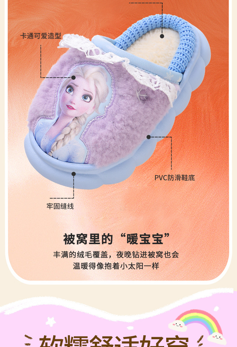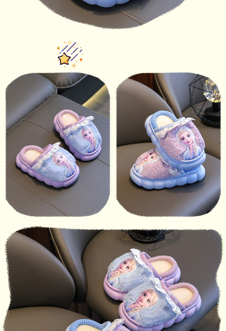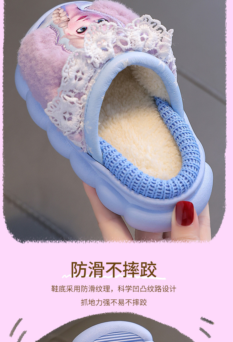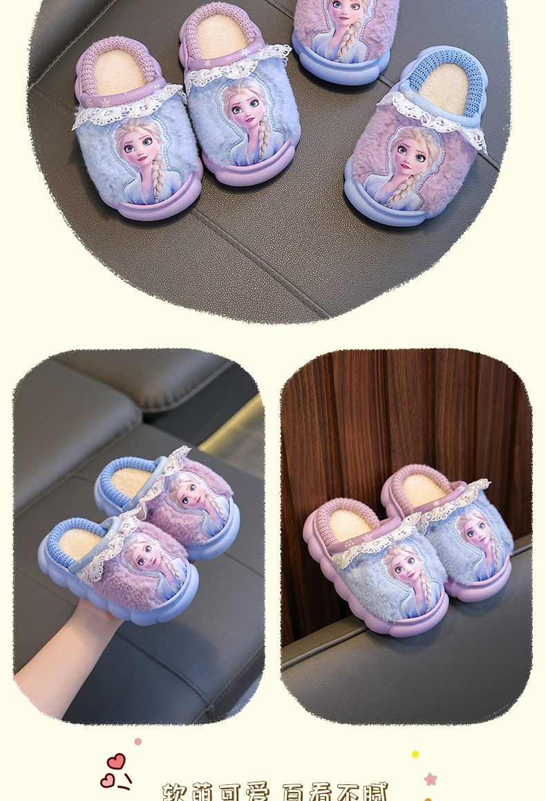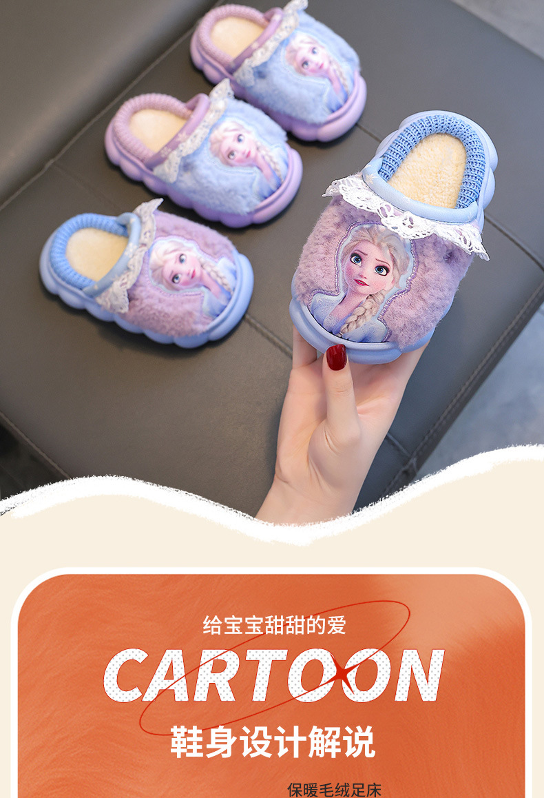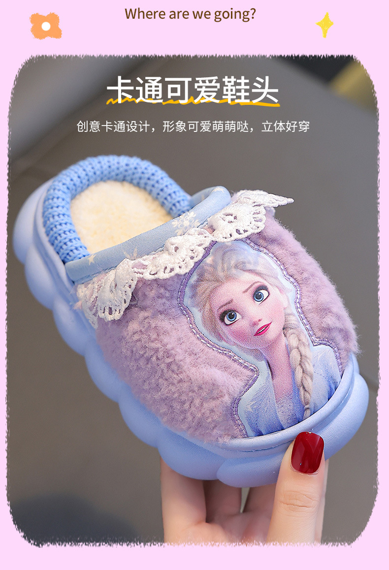 【迪士尼公主爱莎卡通棉拖鞋】女童秋冬室内保暖防滑冰雪奇缘毛绒棉鞋