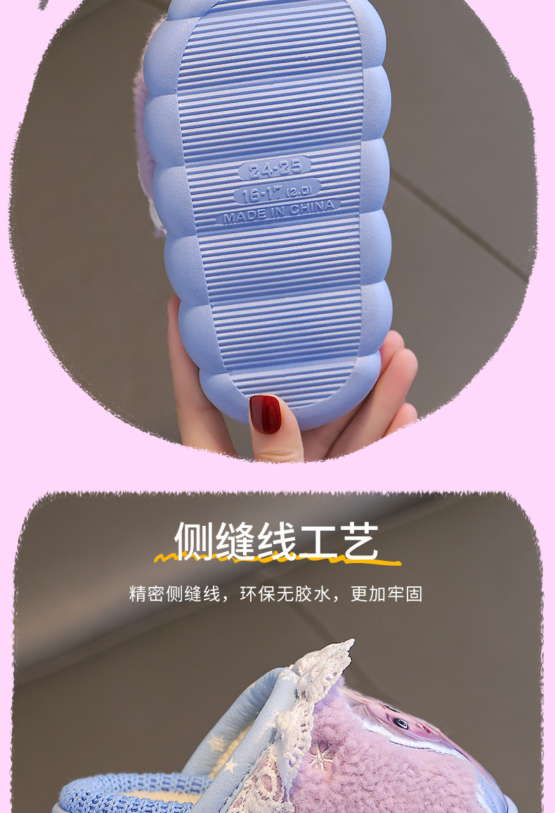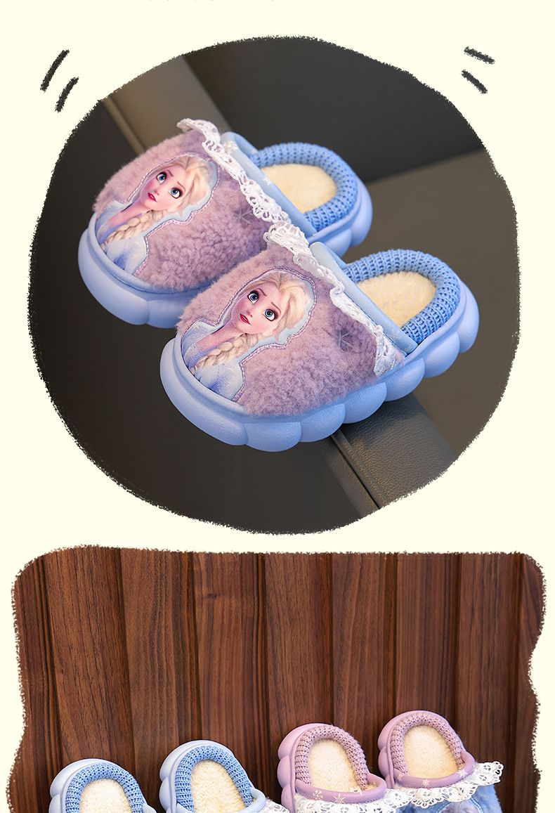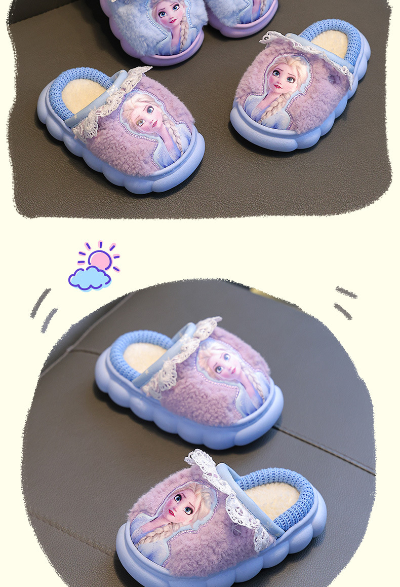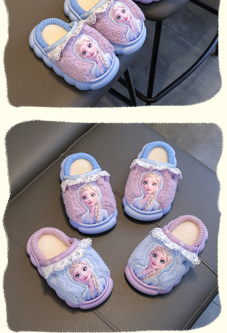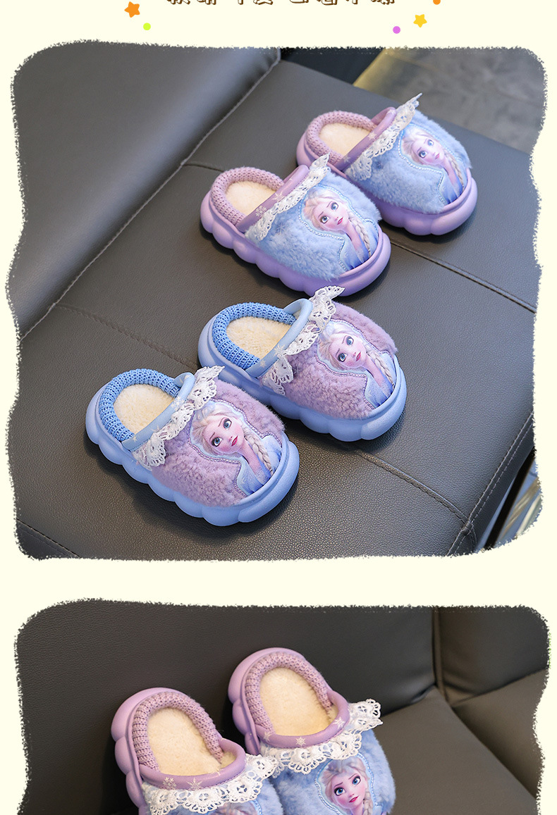 【迪士尼公主爱莎卡通棉拖鞋】女童秋冬室内保暖防滑冰雪奇缘毛绒棉鞋