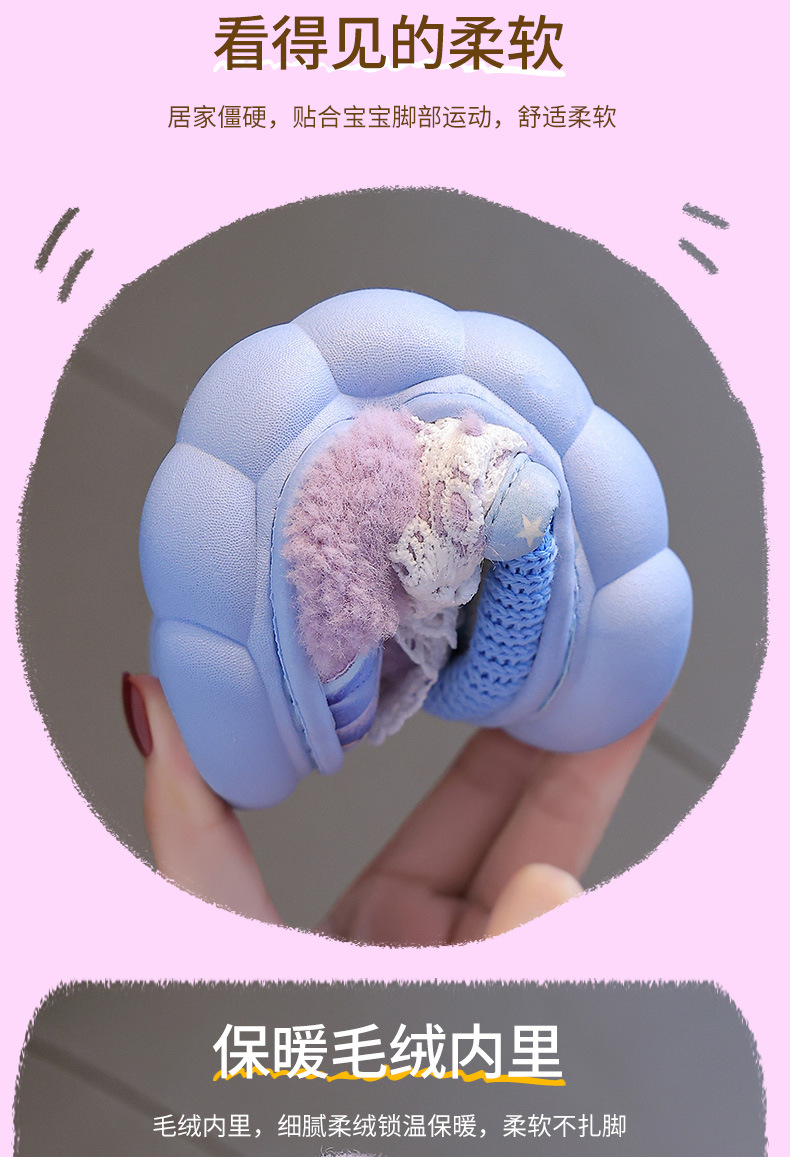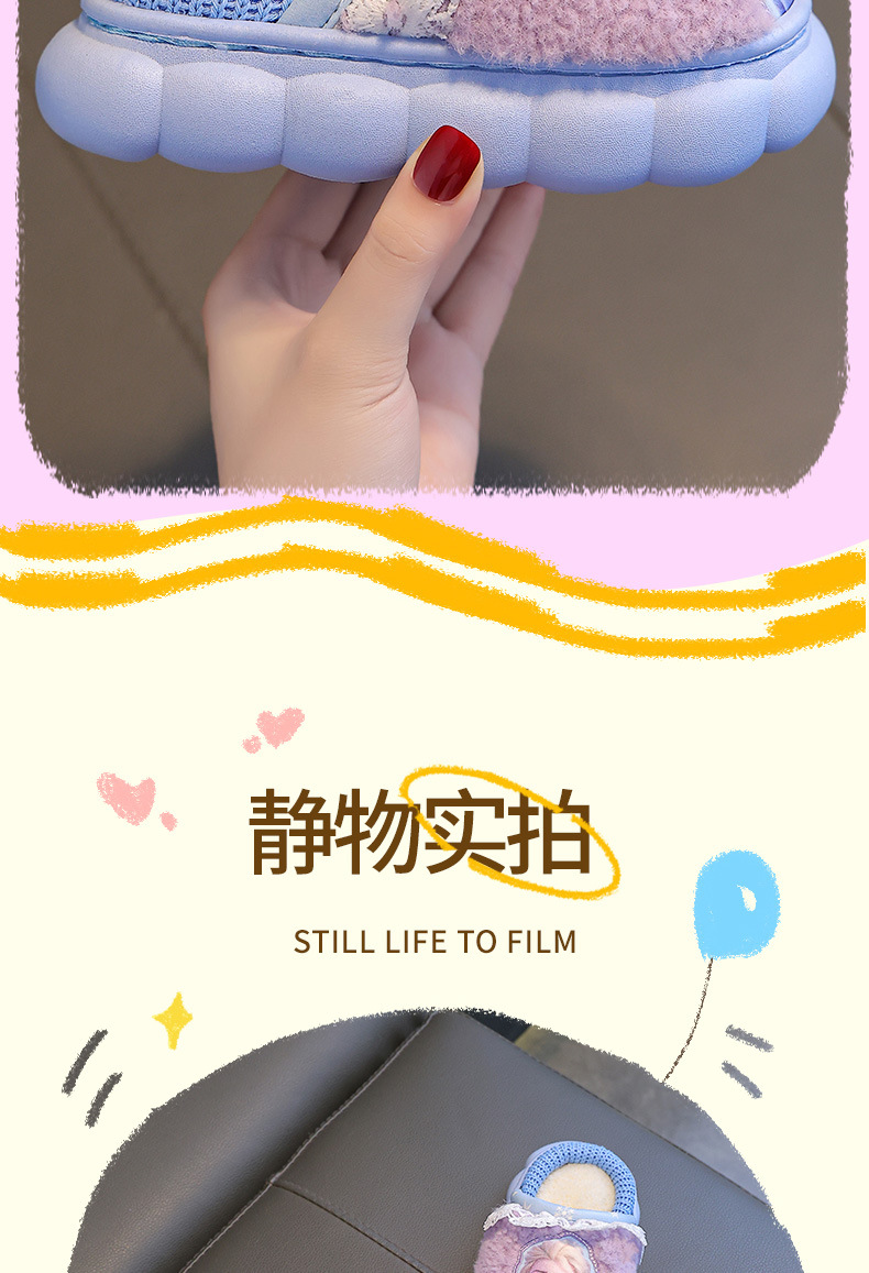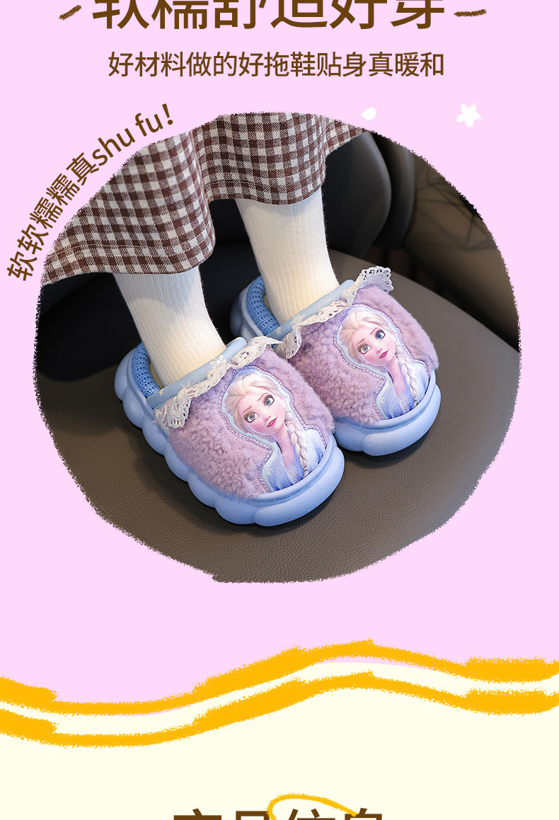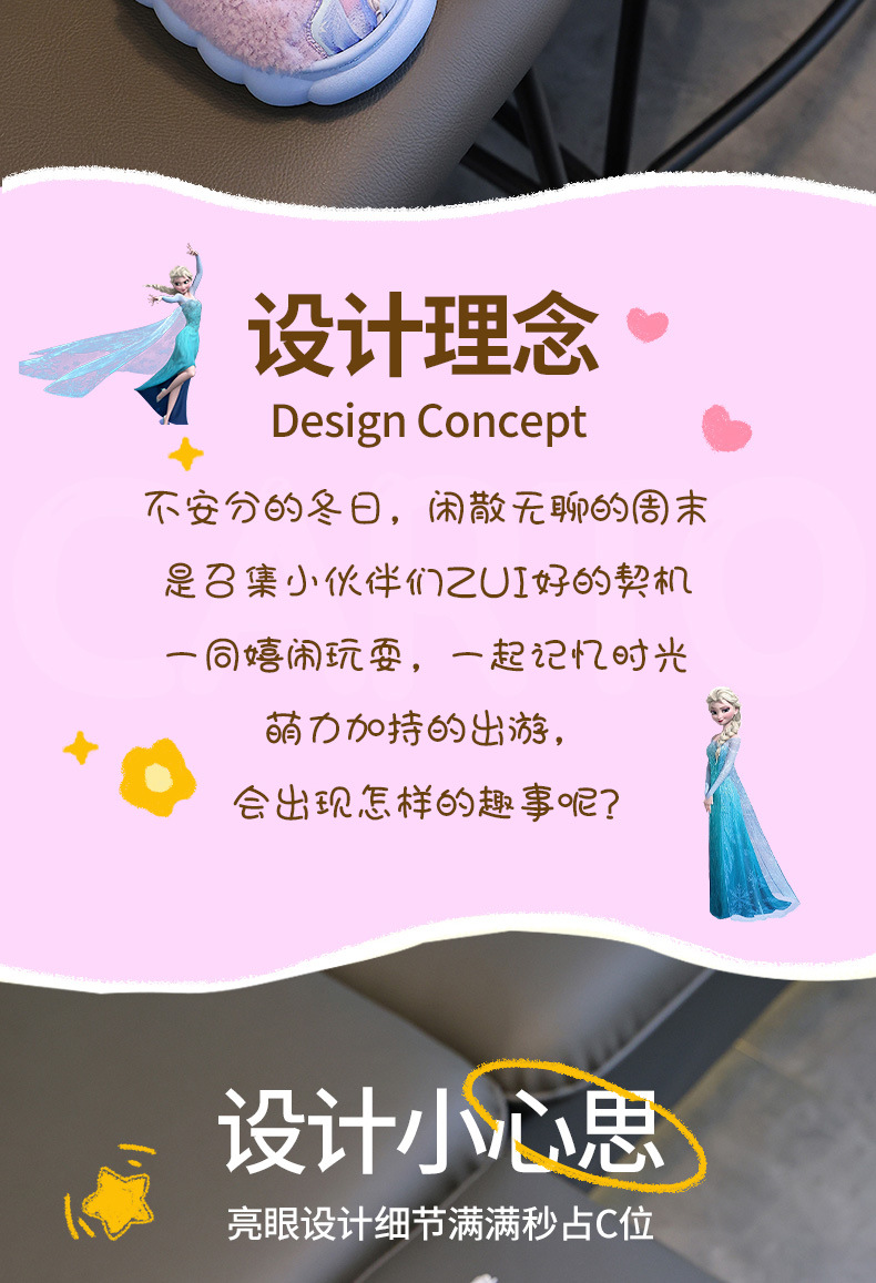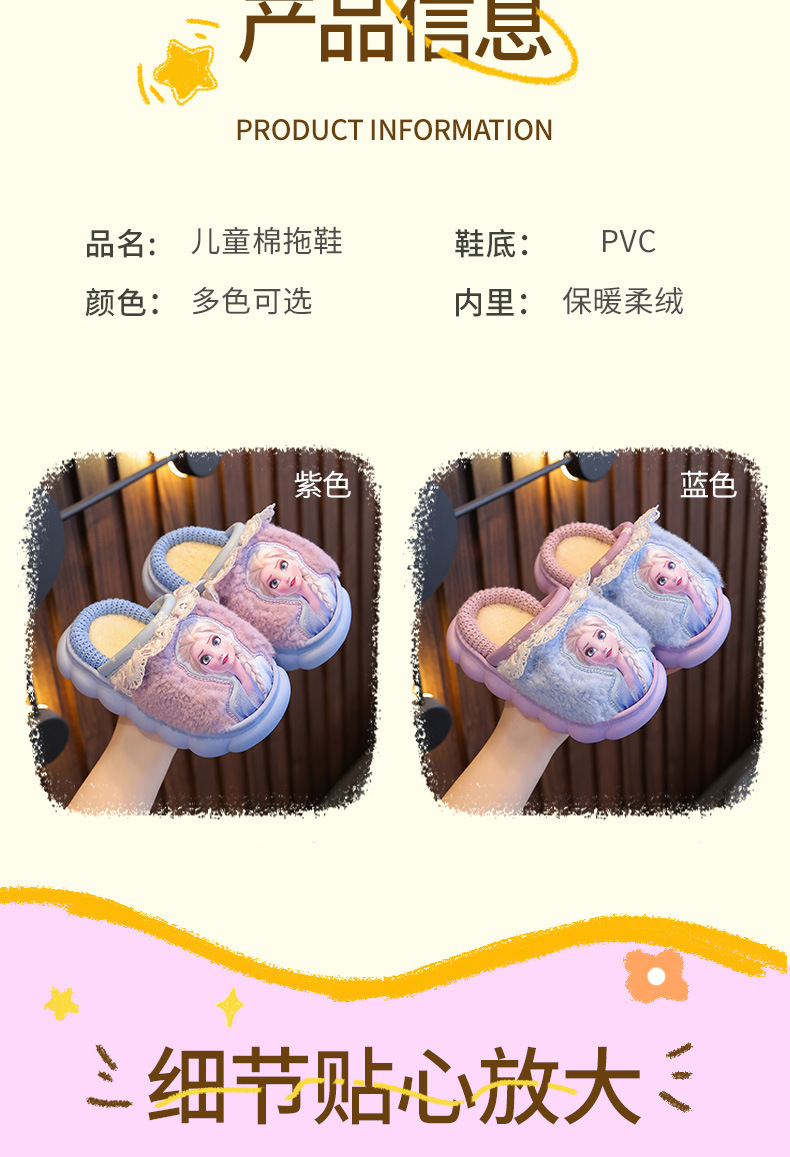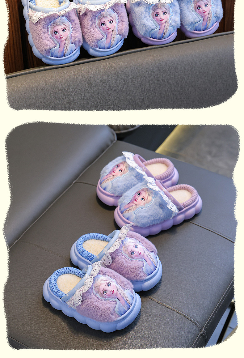 【迪士尼公主爱莎卡通棉拖鞋】女童秋冬室内保暖防滑冰雪奇缘毛绒棉鞋