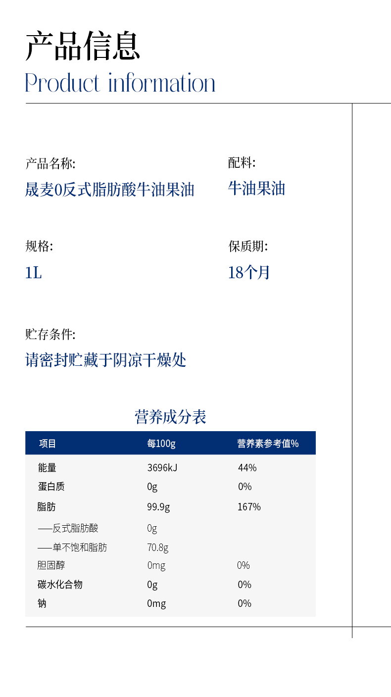 晟麦 0反式脂肪酸牛油果油 食用植物油 1L/瓶