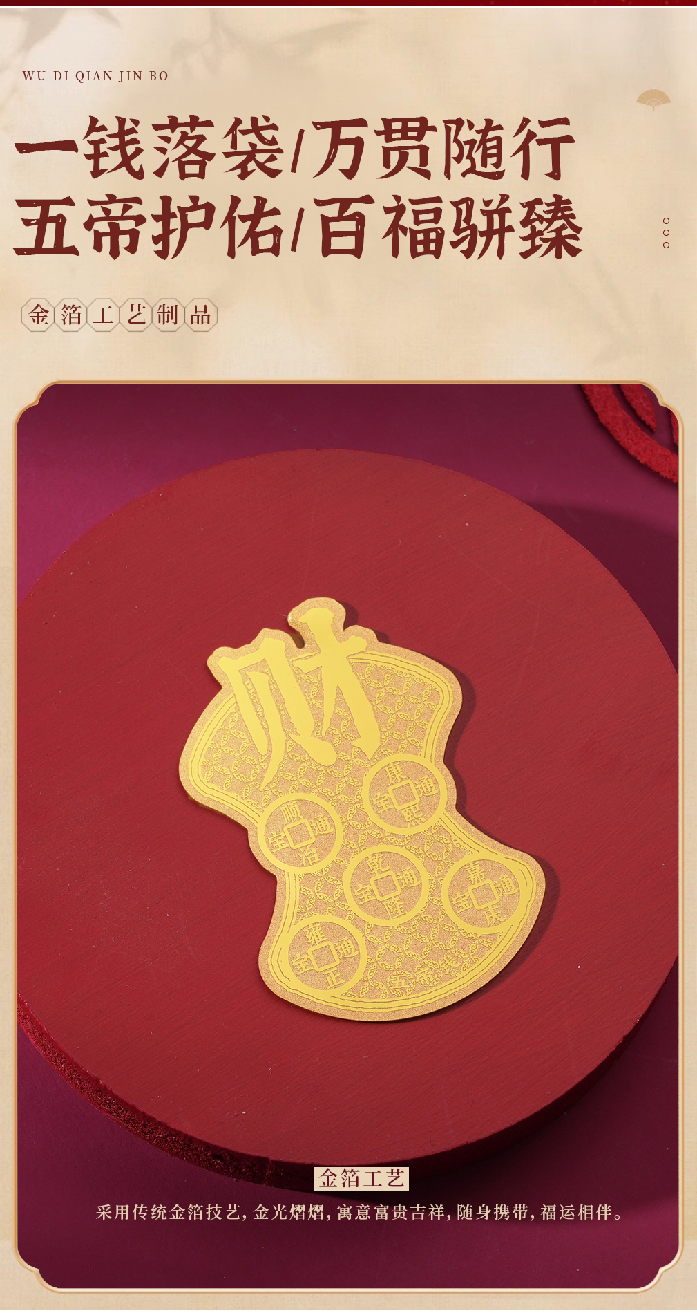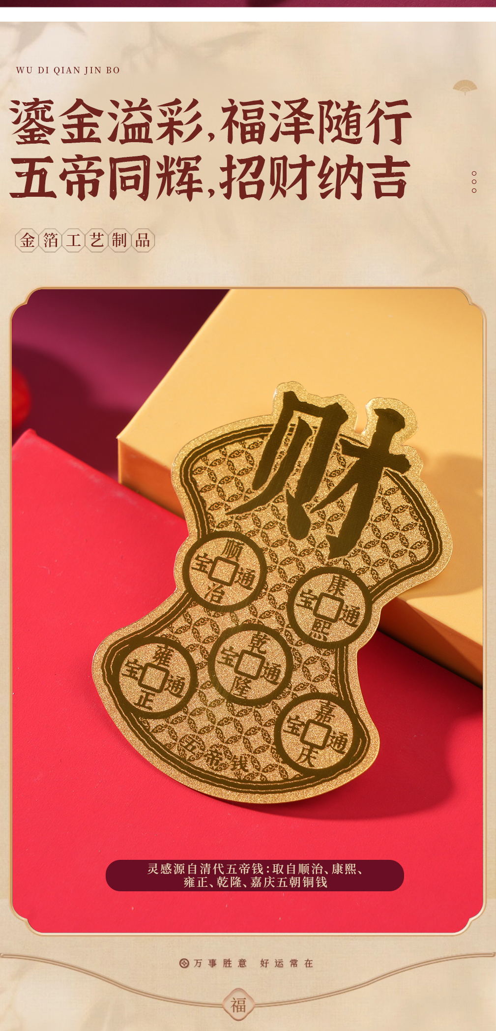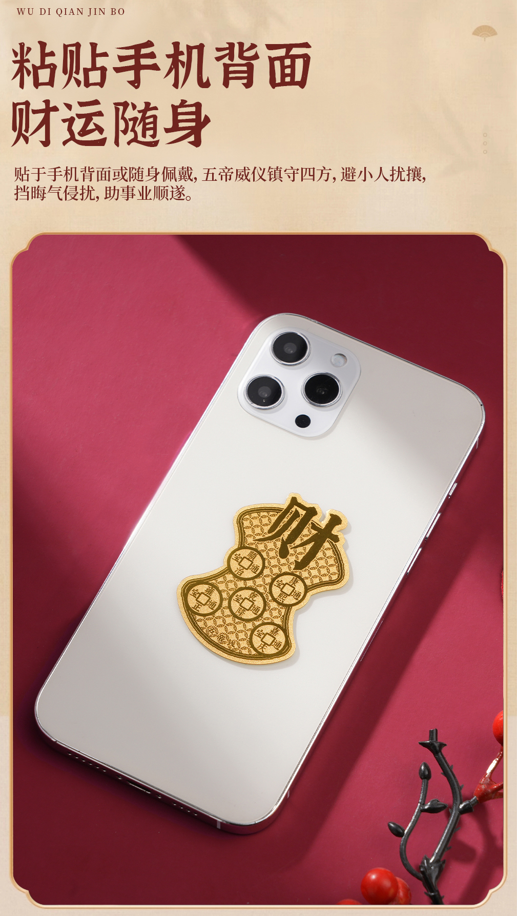 五帝钱护身符金箔手机贴